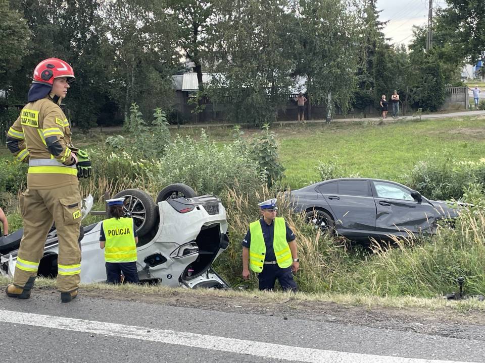 Ze wstępnych ustaleń policji wynika, że kierująca BMW X2, 42-letnia kobieta jadąca drogą wojewódzką nr 480, nie zastosowała się do znaku "STOP" i nie ustąpiła pierwszeństwa przejazdu prawidłowo jadącemu drogą krajową 48-latkowi, kierującemu BMW serii 3. Siła zderzenia obu pojazdów była na tyle duża, że oba auta wypadły z drogi i spadły ze skarpy i finalnie jedno z nich dachowało.