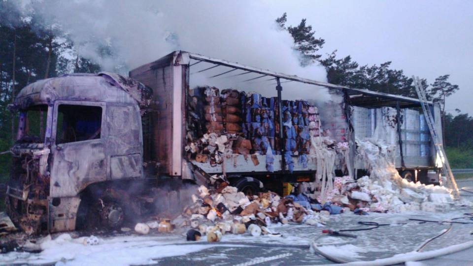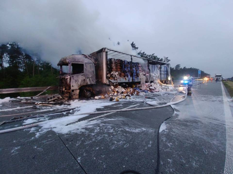Prawdopodobną przyczyną pożaru było "wystrzelenie" (wybuch) opony na jednej z osi naczepy. Na szczęście w zdarzeniu nikt nie ucierpiał.
