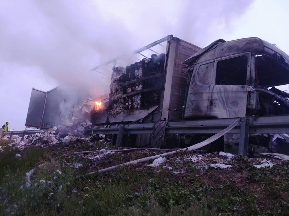 Około godziny 3:20 na drodze S8 w kierunku Warszawy zapalił się zastaw samochodu ciężarowego z naczepą, przewożący ręczniki papierowe. Na czas trwania działań droga w kierunku Warszawy była całkowicie zablokowana, a objazdy organizowano przez MOP Paprotnia. Po ugaszeniu pożaru ruch został częściowo wznowiony.