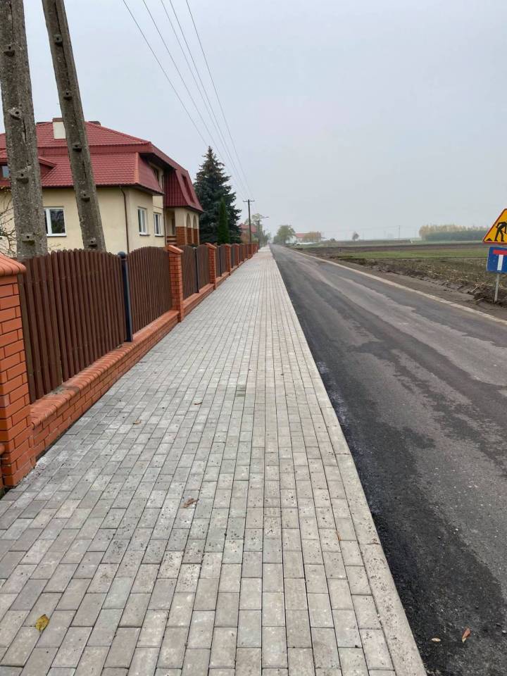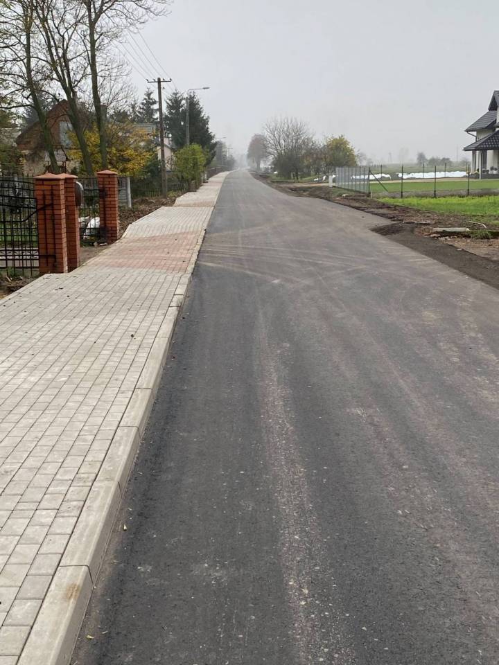 W ramach prowadzonych prac wykonano m.in. chodnik z kostki brukowej, położono nową warstwę asfaltu, wzmocniono pobocza kruszywem łamanym wraz z zagęszczeniem, wykonano nowe oznakowania pionowe.