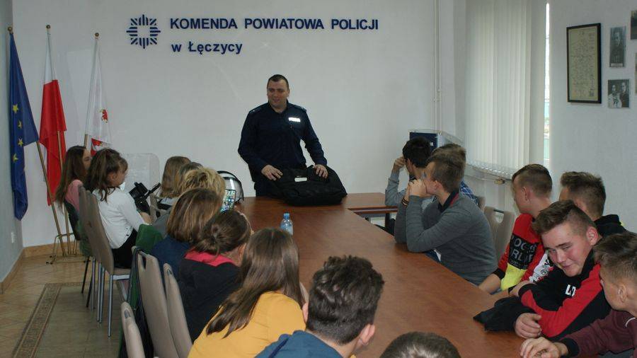 5 listopada 2019 roku w sali odpraw łęczyckiej komendy odbyła się lekcja z doradztwa zawodowego skierowana do uczniów klas 8. W trakcie zajęć przyszli absolwenci dowiedzieli się między innymi czym zajmuje się na co dzień policja i z jaką odpowiedzialnością wiąże się ta służba. Słuchaczom wyjaśniono specyfikę pracy dzielnicowego oraz czym zajmuje się „drogówka". Nie zabrakło informacji o stróżach prawa niekorzystających na co dzień z mundurów. Poza omówieniem poszczególnych pionów służby policji, większość spotkania poświęcono tematyce związanej z procesem rekrutacji oraz wymaganiom, które musi spełnić przyszły kandydat. Omawiając poszczególne etapy rekrutacji policjanci radzili jaką ścieżkę nauki obrać, która ułatwi im wstąpienie w szeregi stróżów prawa. Na zakończenie policjanci zaprezentowali sprzęt wykorzystywany podczas codziennej służby.