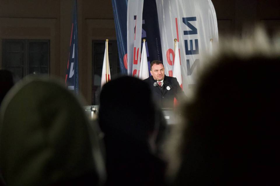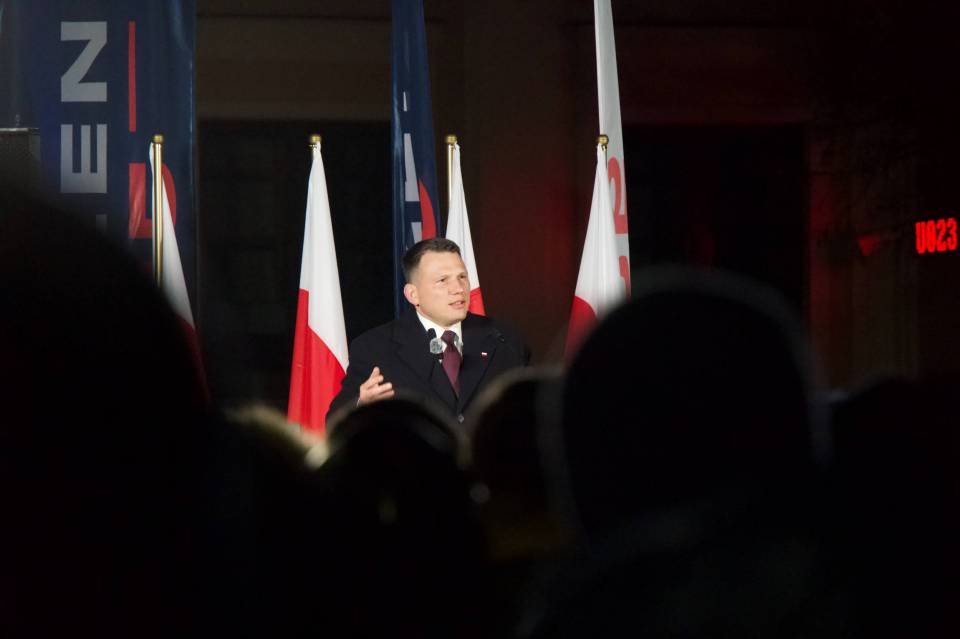 - Każdego roku ponad 100 000 tysięcy ludzi wychodzi na ulice Warszawy z biało-czerwonymi flagami i tworzy się wielka rzeka polskości - piękny widok. Nie organizują tego żadni politycy, rząd czy władze Warszawy. Jest to oddolnie organizowane. A jak do Marszu Niepodległości podchodzi nasz rząd? Za pierwszych rządów Tuska prawie co roku były organizowane jakieś policyjne prowokacje, żeby pokazać, że są to jacyś "zadymiarze", awanturnicy, a nie normalni ludzie czy rodziny z dziećmi, które przyjechały tam świętować. A co robi Rafał Trzaskowski? Prawie co roku, od kiedy został Prezydentem Warszawy, próbuje zakazać przejścia Marszu Niepodległości. Ma problem z tym, że Polacy w stolicy swojego Państwa chcą świętować kolejną rocznicę odzyskania Niepodległości. Ma problem z tą rzeką biało-czerwonych flag. Gdyby te flagi nie były biało-czerwone, a tęczowe, to paradowałby tam w pierwszym szeregu - grzmiał Sławomir Mentzen.