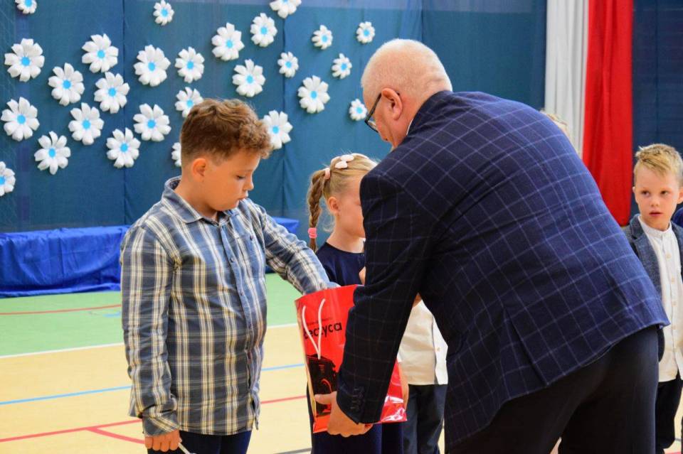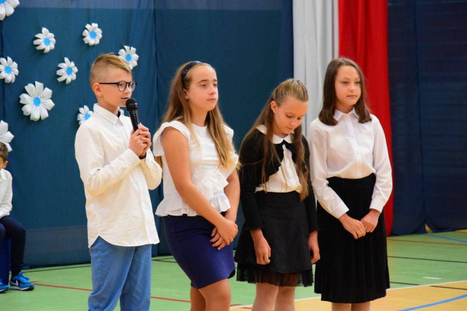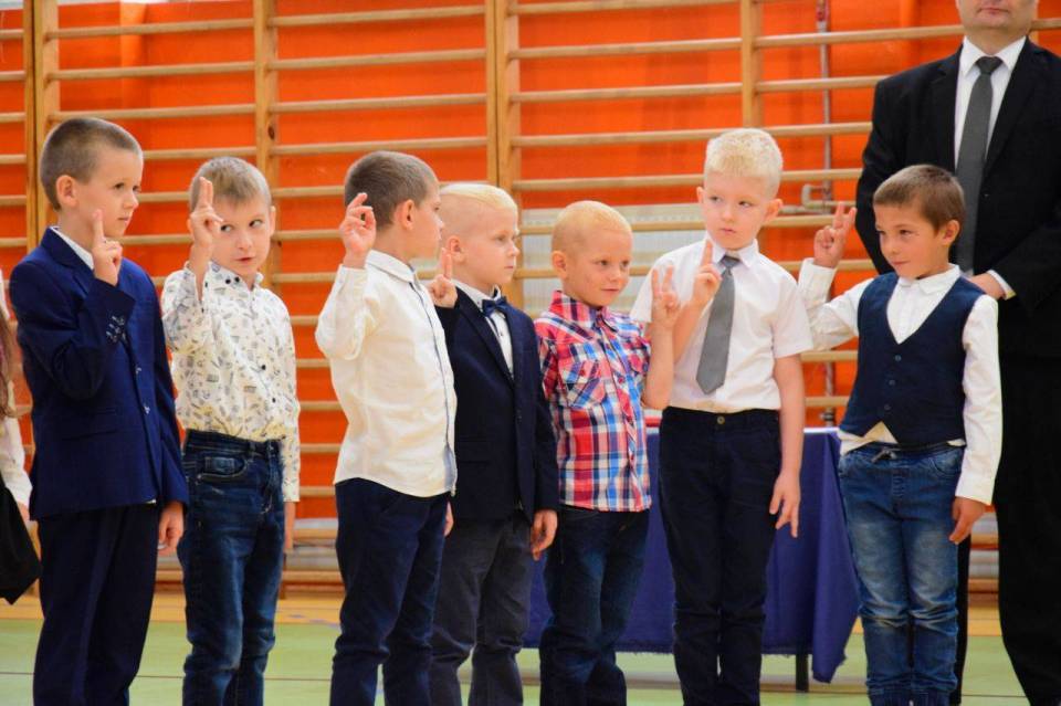 Zanim doszło do złożenia ślubowania i symbolicznego mianowania ołówkiem, pierwszoklasiści zostali przywitani przez starszych kolegów i koleżanki z klasy czwartej, poprzez występ artystyczny. W nowej szkole dzieci przywitał Burmistrz Paweł Kulesza oraz pan dyrektor Piotr Pakuła, po czym rozpoczął się najważniejszy moment, czyli ślubowanie pierwszoklasistów.