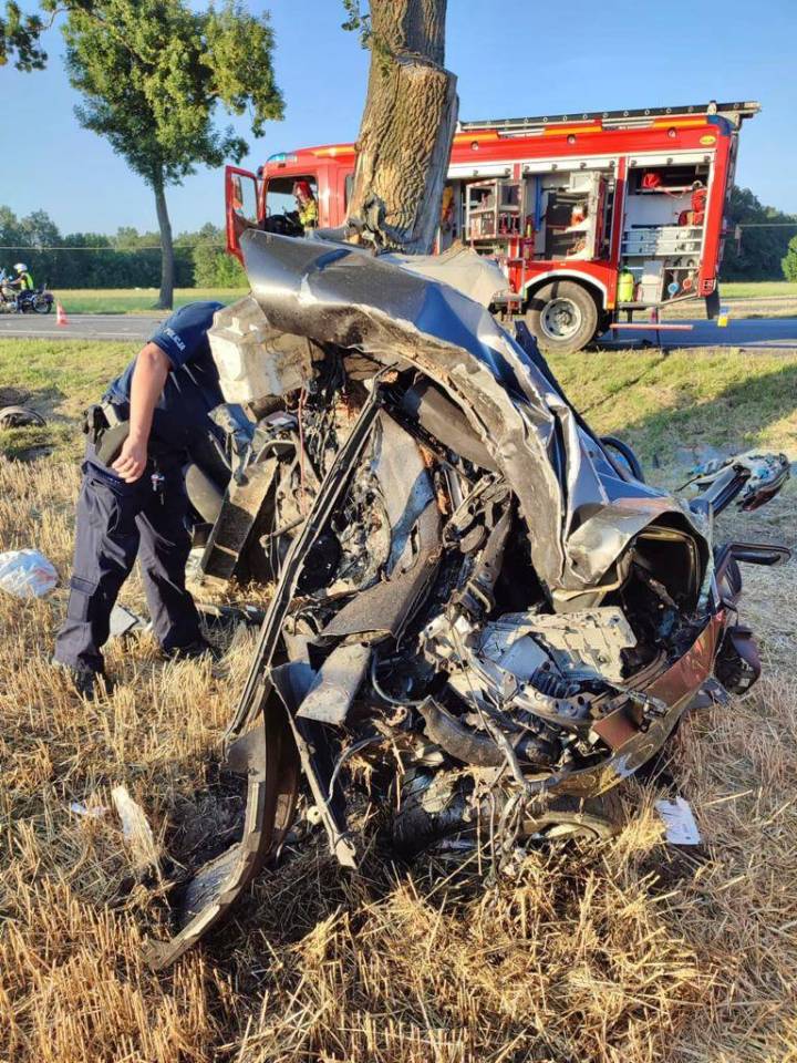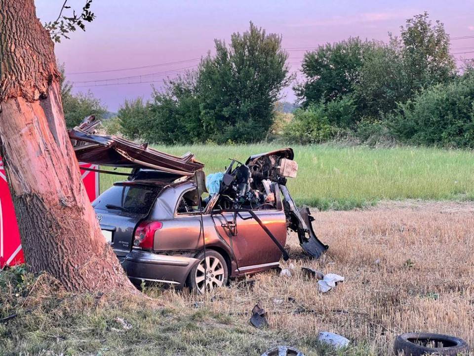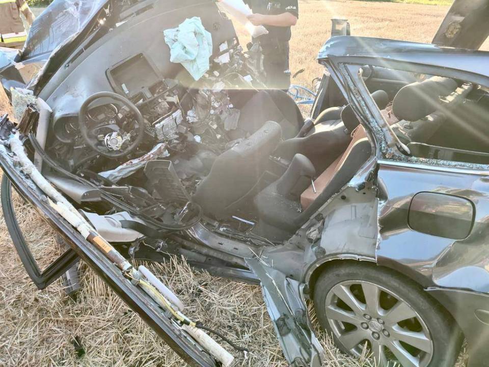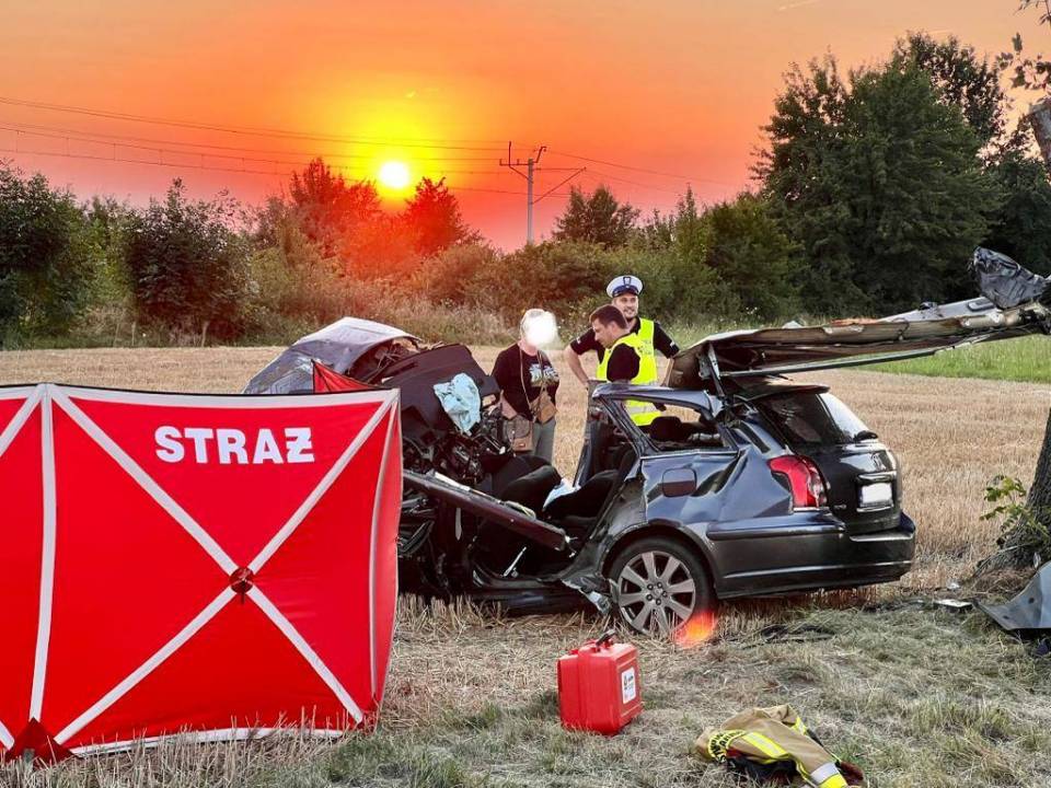 Śmiertelny wypadek na DK91! Nie żyje kierowca Toyoty, samochód jest całkowicie zniszczony