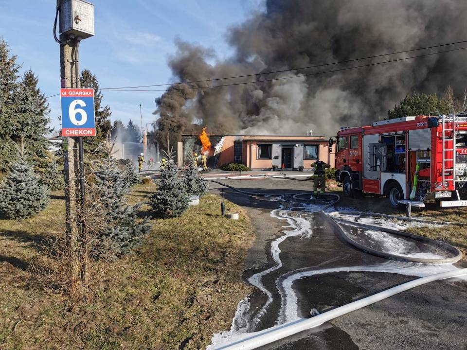 Przypomnijmy, w środę (5 marca) kilka minut przed godziną 9:00 do stanowiska kierowania Komendanta Powiatowego Państwowej Straży Pożarnej w Zgierzu wpłynęło zgłoszenie o pożarze przy ul. Gdańskiej w Słowiku. Ogniem objęty był budynek o wymiarach 13 m x 20 m, należący do rozlewni rozpuszczalników.