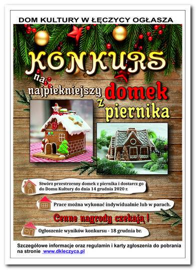 Dom Kultury w Łęczycy zaprasza miłośników i mistrzów wypiekania świątecznych pierników do konkursu na najpiękniejszy domek z piernika.