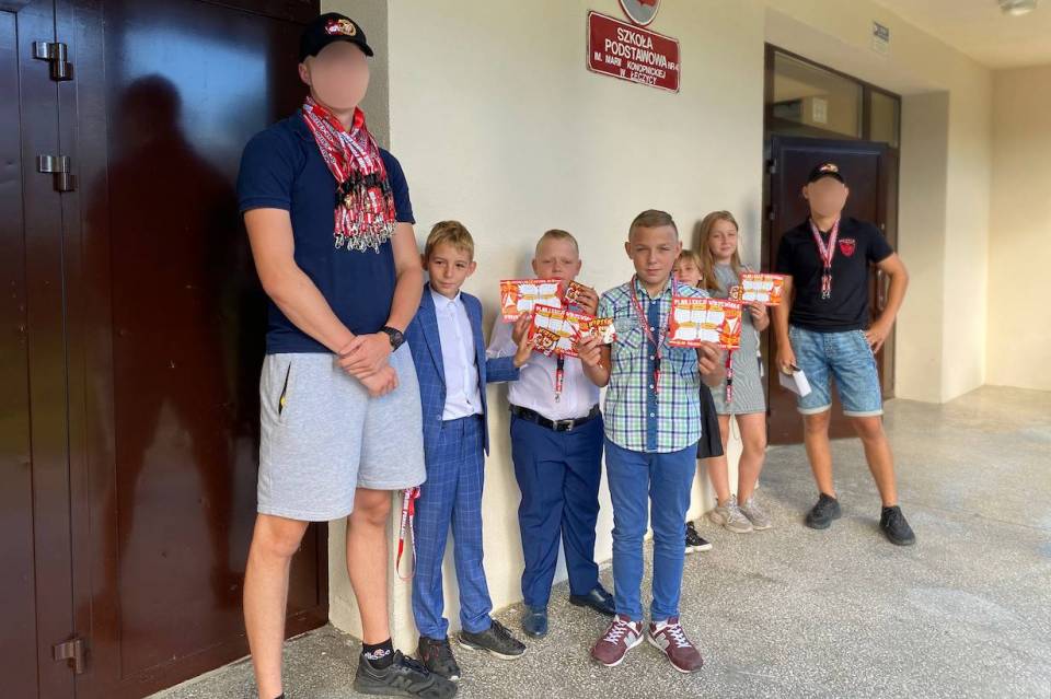 Kibice czerwono-biało-czerwonych z Łęczycy pojawili się przed budynkami Szkoły Podstawowej nr 1 oraz Szkoły Podstawowej nr 4, życząc uczniom powodzenia w nowym roku szkolnym. Do życzeń dołączyli przygotowane wcześniej prezenty, wśród których były plany lekcji, długopisy, ołówki, smyczki, vlepki oraz magnesy na lodówkę.