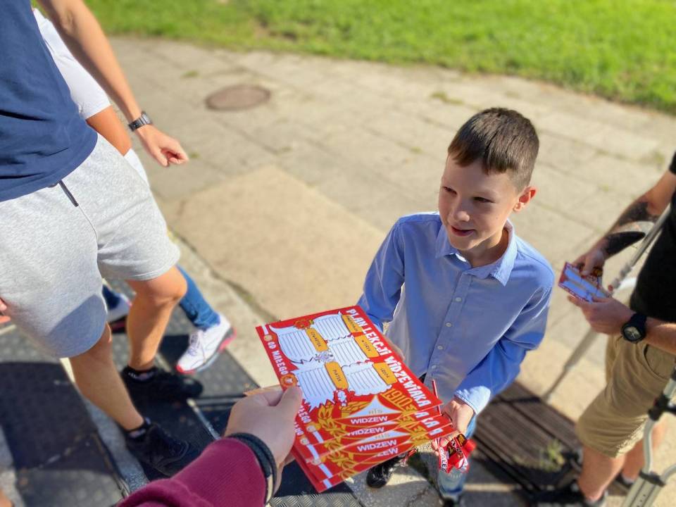 Kibice Widzewa Łódź z Łęczycy nie zapomnieli o uczniach wracających do szkół. Z okazji rozpoczynającego się dzisiaj roku szkolnego miejscowy Fan Club czterokrotnego Mistrza Polski obdarował najmłodszych gadżetami, oczywiście z herbem Widzewa.