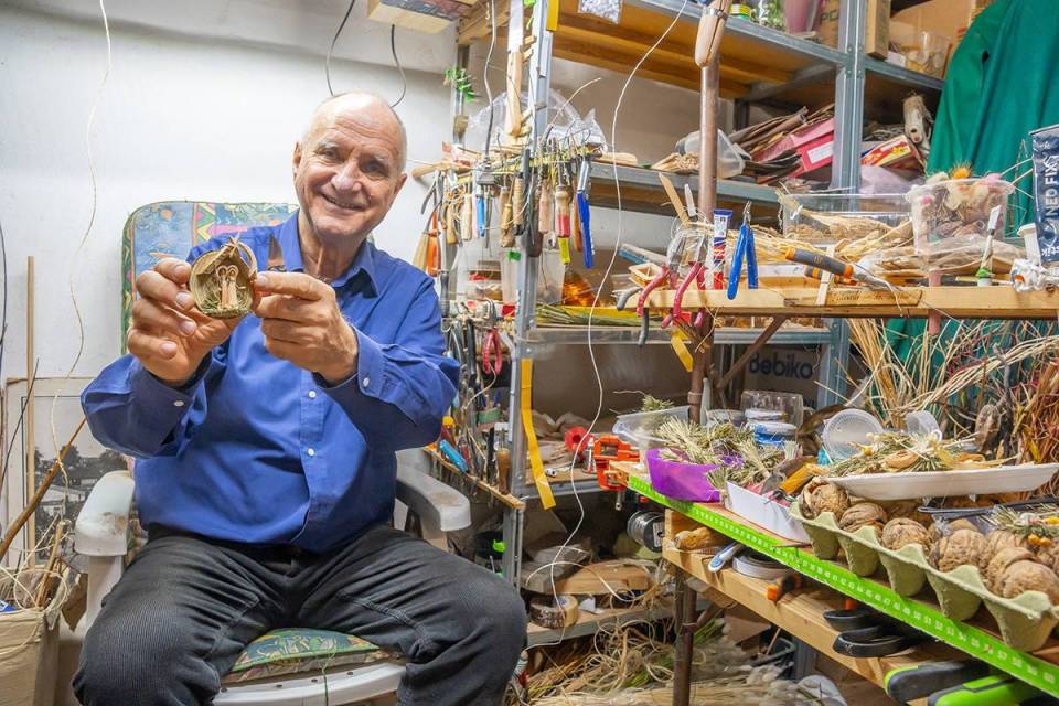 Wyjątkowa pasja trwa od kilku dekad. Pan Mariusz pochodzi z Żarnowicy Małej, ale dzieciństwo spędził w pałacu biskupów kujawskich w Wolborzu, siedzibie szkoły rolniczej, w której uczył ojciec artysty. – Prace plastyczne były w naszym domu zawsze obecne – wspomina. To wtedy uczył się robienia ozdób w orzechach i wyplatania np. koszy ze sznurka i wikliny. Z wykształcenia jest rolnikiem, więc pracę w gospodarstwie łączył z rękodziełem.