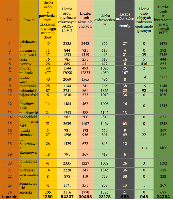 Liczba osób z potwierdzonym zakażeniem w województwie łódzkim: 54337