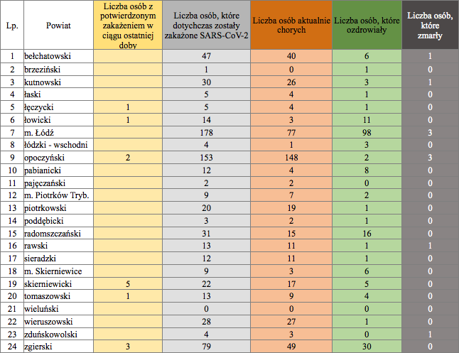 Sytuacja epidemiologiczna w województwie łódzkim: