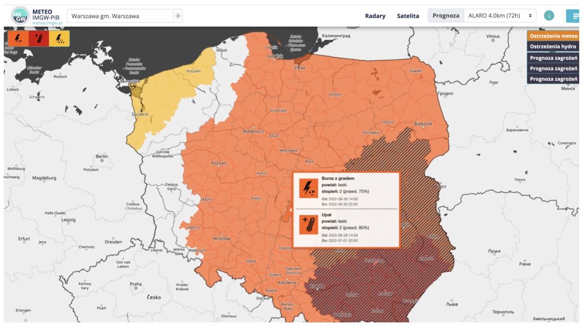 Nad zachodnią Polską już od nocy ze środy na czwartek rozwijają się burze i te swoim zasięgiem obejmą także nasze województwo. Już na dziś na popołudnie i wieczór wydano dla części Łódzkiego alert II stopnia przed niebezpiecznymiburzami z gradem i obfitymi opadami deszczu. Alert obejmuje powiat: bełchatowski, kutnowski, łaski, łęczycki, Łódź, pabianicki, pajęczański, poddębicki, sieradzki, wieluński, wieruszowski, zduńskowolski i zgierski, a ostrzeżenie obowiązuje od godz. 14:00 dnia 30.06.2022 do godz. 22:00 dnia 30.06.2022.