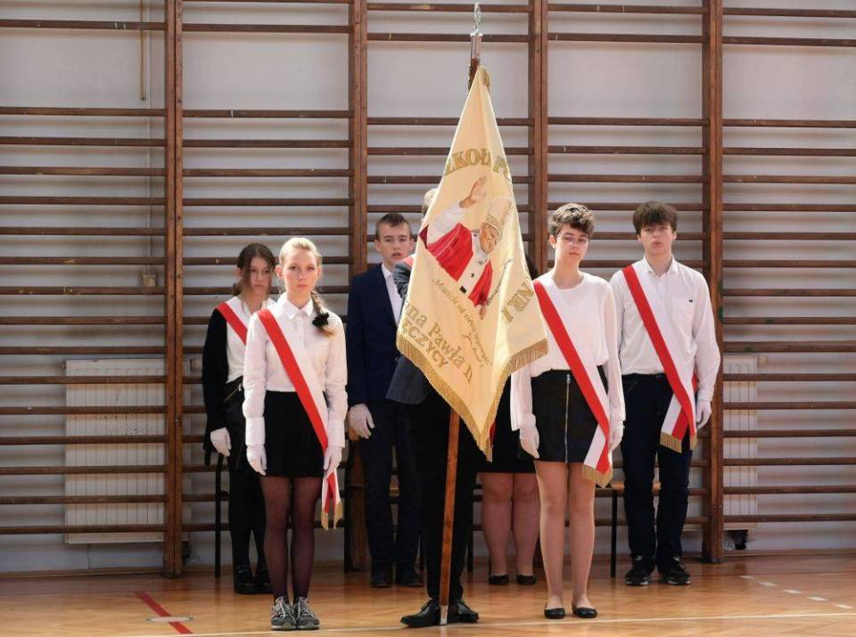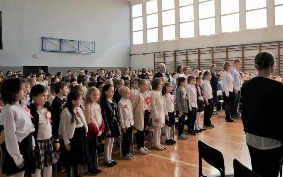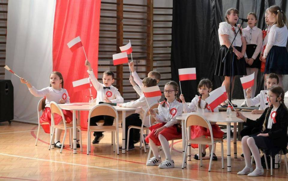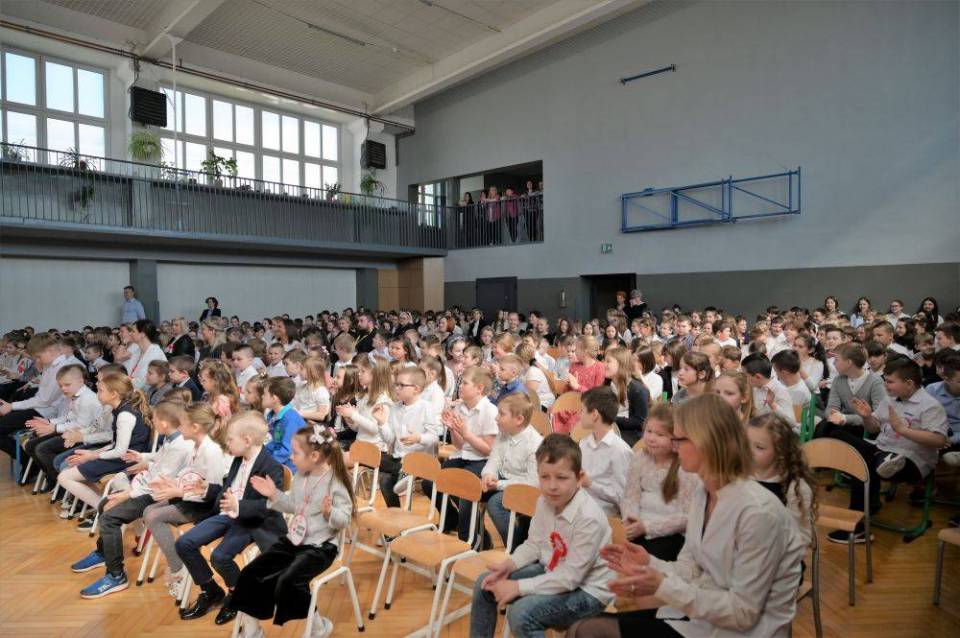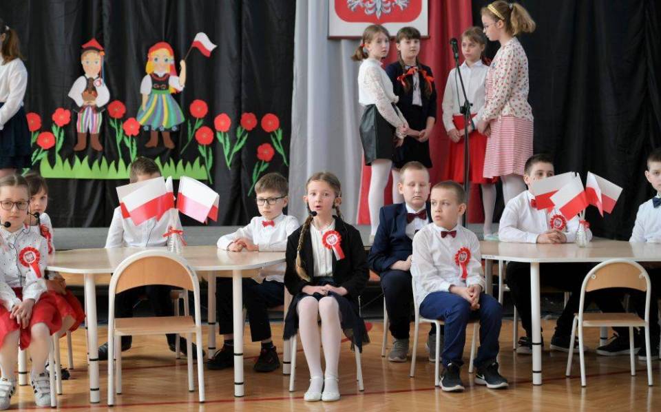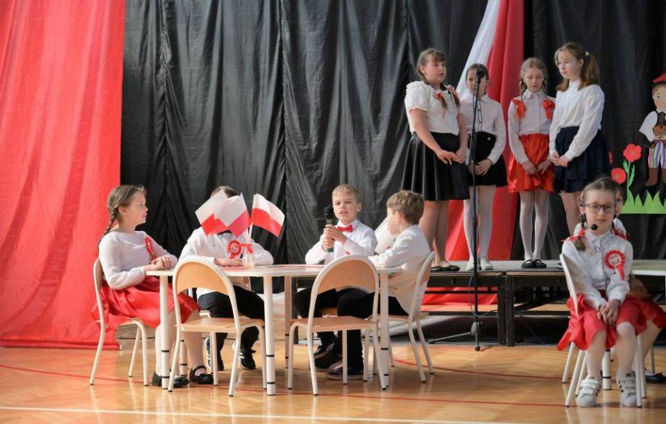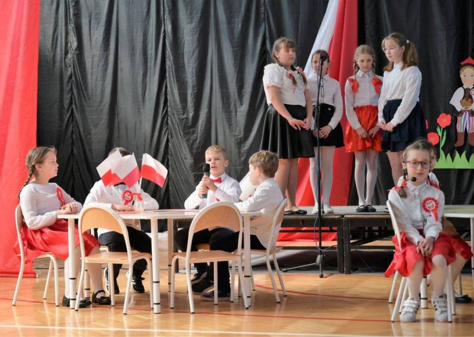 Uczniowie Szkoły Podstawowej nr 1 im. Jana Pawła II w Łęczycy wzięli udział w uroczystej akademii z okazji Święta Konstytucji 3 Maja. Ubrani na galowo, dziewczynki ze wstążkami w warkoczach a chłopcy z muchami opowiedzieli swoim rówieśnikom czym była konstytucja i jakie konsekwencje za sobą niosła dla Ojczyzny.
