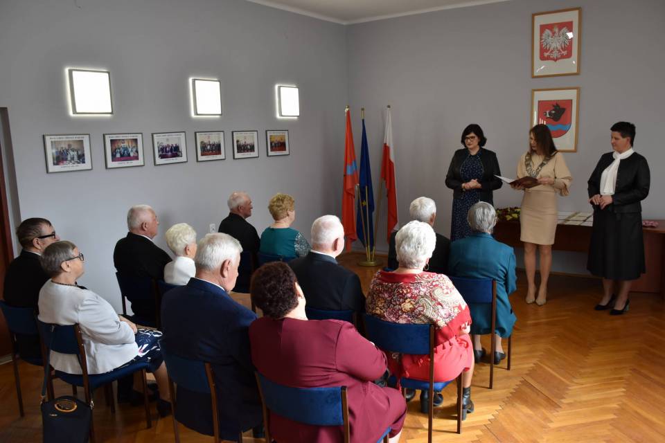 Niestety, stan zdrowia nie pozwolił wszystkim Jubilatom na przybycie, w uroczystości udział wzięło 6 par małżeńskich. Jedna para odebrała odznaczenia w innym terminie.
