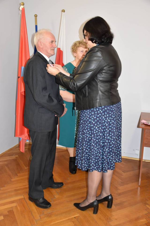 Dekoracji Dostojnych Jubilatów, w imieniu Prezydenta Rzeczypospolitej Polskiej Pana Andrzeja Dudy, dokonały: Zastępca Wójta Pani Anna Matusiak i Przewodnicząca Rady Gminy Pani Halina Jeżak.