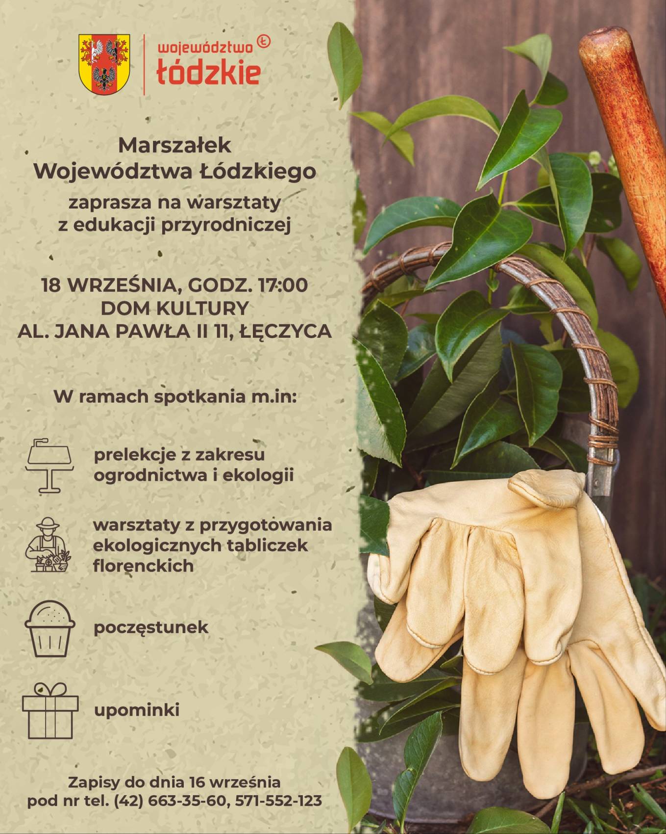 Dom Kultury w Łęczycy, w imieniu Marszałka Województwa Łódzkiego, zaprasza na spotkanie szkoleniowo-warsztatowe o tematyce ogrodniczej dla mieszkańców województwa łódzkiego.