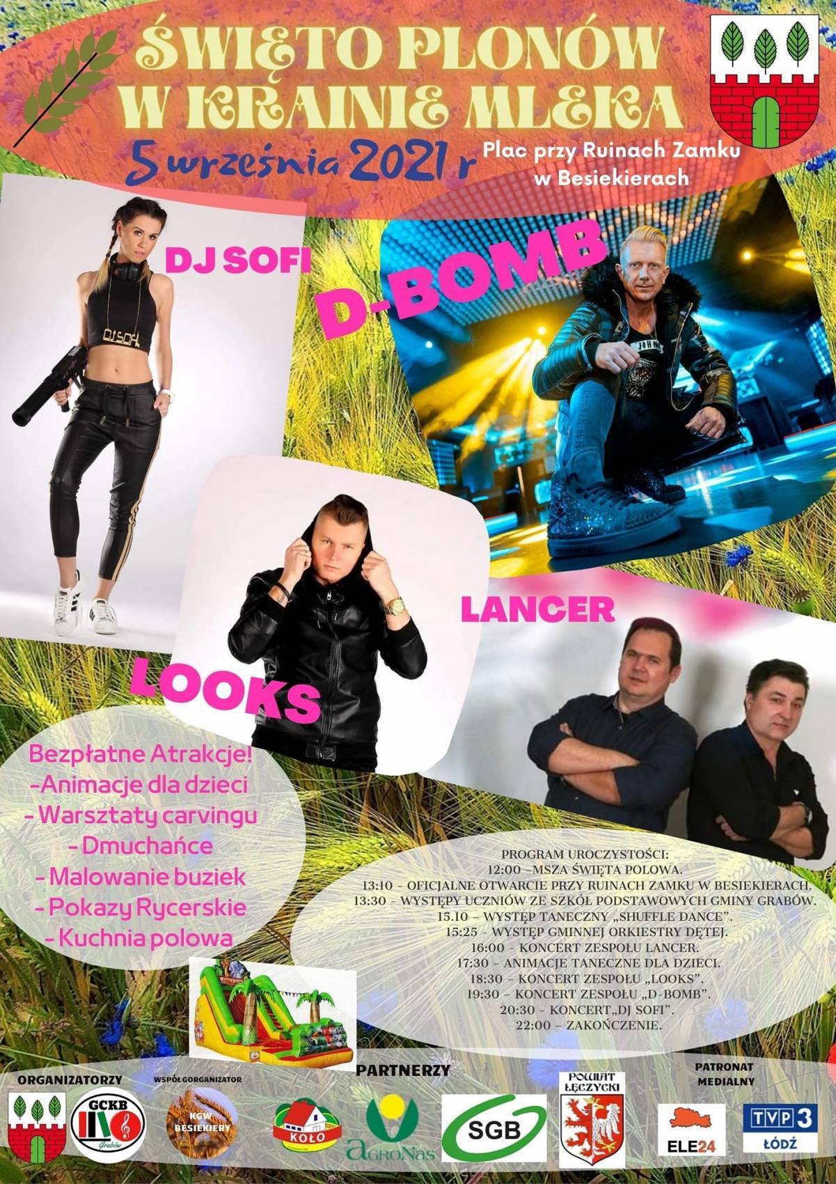 - Dokładnie 5 września 2021 r będziemy obchodzić uroczystość, zwieńczającą trud pracy rolników i hodowców z terenu Gminy Grabów. Wydarzenie rozpocznie klasycznie Msza Święta, tym razem odbędzie się ona w plenerze - informują przedstawiciele Urzędu Gminy Grabów. - Przewidzieliśmy na ten dzień moc atrakcji. Na scenie wystąpią: DBOMB , LOOKS DJ SOFi LanceR! Oczywiście to nie wszystko! Zapewniamy moc bezpłatnych atrakcji m. in. dmuchańce, malowanie buziek, animacje dla dzieci, warsztaty carvingu, kuchnię polową oraz pyszne dania przygotowane przez Panie z Kół Gospodyń Wiejskich z terenu naszej gminy.