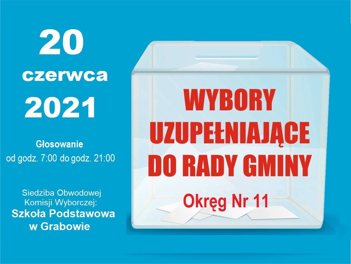 W niedzielę, 20 czerwca w godzinach 7:00 - 21:00 odbędzie się głosowanie w wyborach uzupełniających do Rady Gminy Grabów w okręgu wyborczym nr 11, obejmującym ulice: ul. Dąbska, ul. Łąkowa, ul. Polna, ul. Prucheniec, ul. Reymonta, ul. Targowa.
