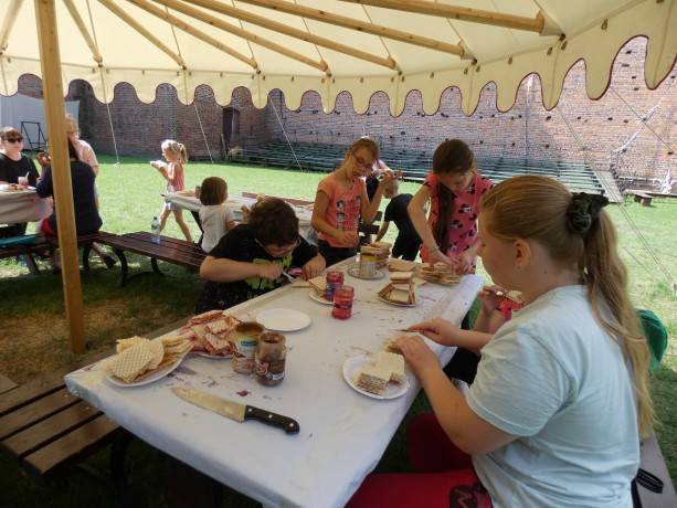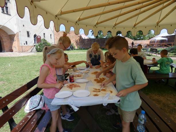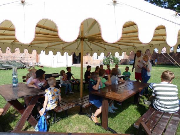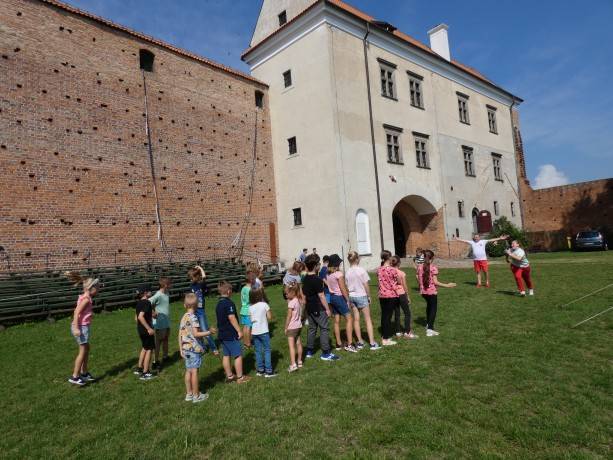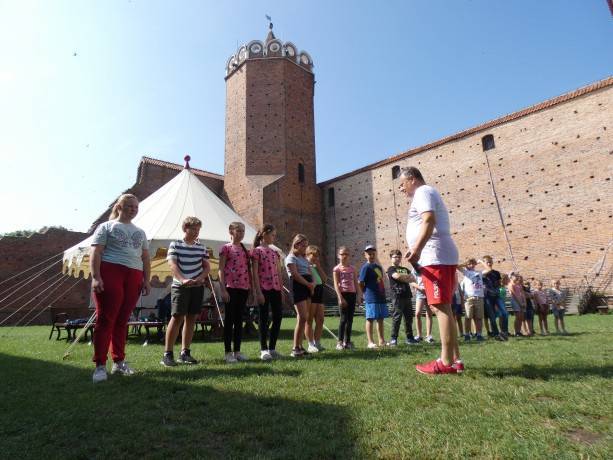 Wczorajszy poranny deszcz nie wystraszył uczestników muzealnych wakacji, którzy licznie przybyli na pierwsze zajęcia w „Szkole rycerskiej króla Kazimierza" .