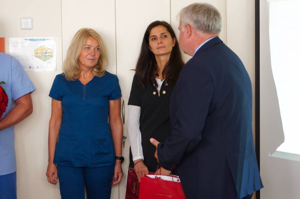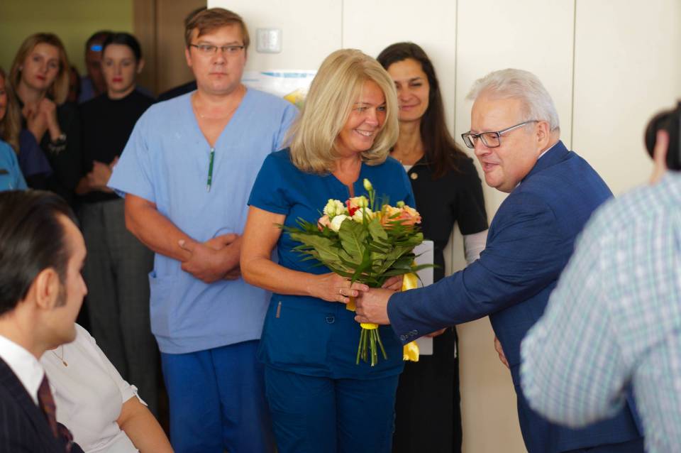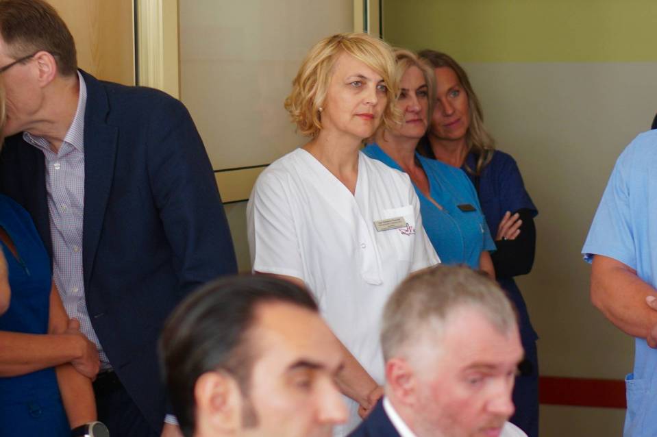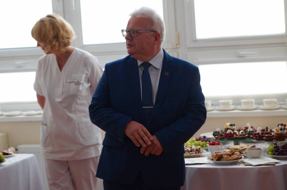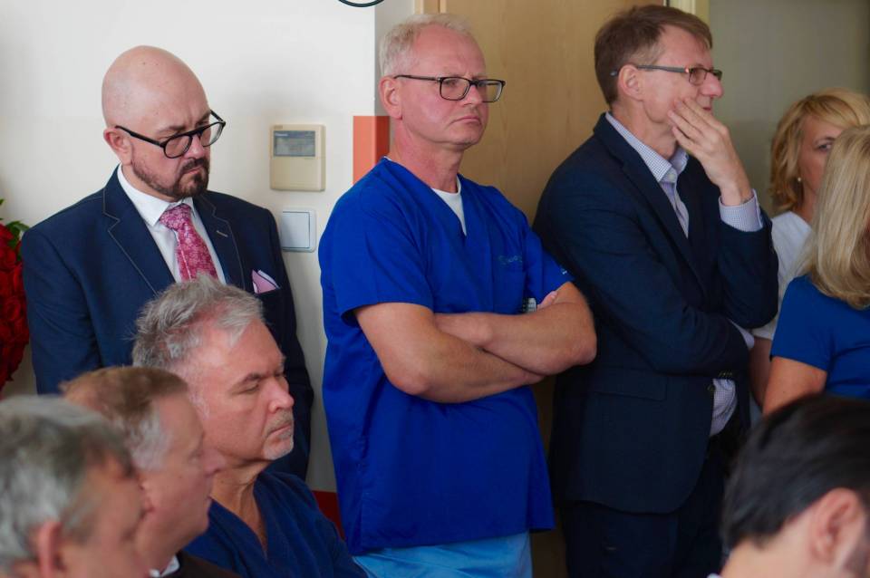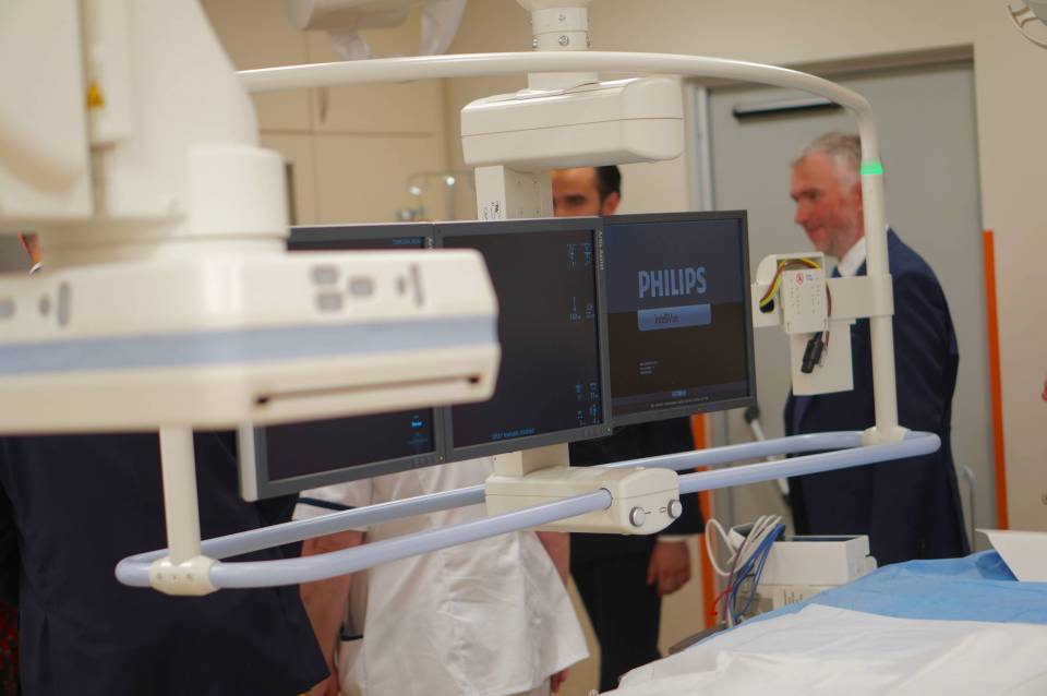 Ostatnim punktem części oficjalnej było uroczyste poświęcenie nowego aparatu, który jak podkreślał Prezes Adam Szlachta, stanowi najwyższej klasy zabezpieczenie dla kardiologii interwencyjnej oraz otwiera różne możliwości kolejnych kroków, które umożliwią jeszcze lepsze zabezpieczenie regionu łęczyckiego dla pacjentów. Następnie goście mieli okazję zwiedzić oddział, porozmawiać ze specjalistami kardiologii oraz z pacjentami.