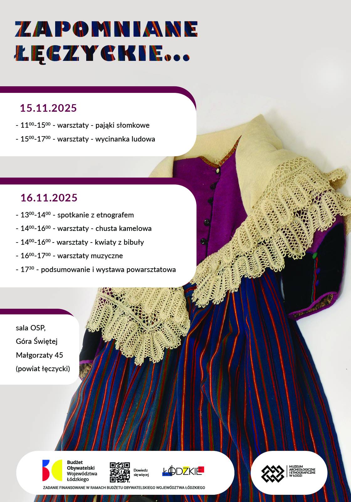Muzeum Archeologiczne i Etnograficzne w Łodzi zaprasza na bezpłatne warsztaty zatytułowane „Zapomniane łęczyckie". Będzie okazja poznać tutejszy folklor i nauczyć się między innymi tworzenia chust kamelowych.