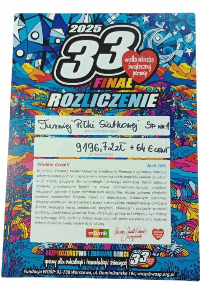 Jednym słowem na boiskach i w strefie kibica nie brakowało emocji. Na szczęście Ci, którzy opadli z sił mogli posilić się słodkościami, kawą i herbatą w strefie bufetowej. Wspaniała sportowa atmosfera trwała przez 7 godzin, aż do 15:00, kiedy to zrobiło się naprawdę gorąco, za sprawą licytacji. Nie pomogło nawet wylicytowanie jako pierwszej klimatyzacji. Na aukcjach pojawiły się takie przedmioty, jak piłka z autografami Jastrzębskiego Węgla – Mistrza Polski, zdjęcie z autografami reprezentantek Polski z Ligi Narodów - Bangkok 2024, reprezentacyjne dresy i koszulki siatkarskie, piłki z podpisami siatkarek Chemika Police oraz Grot Budowlani Łódź, koszulka z autografami Kamila Stocha, Dawida Kubackiego, Pawła Wąska i Kamila Zniszczoła z zawodów Pucharu Świata – Zakopane 2025, koszulki Kamila Szeremety oraz Michała Jarlińskiego – medalistów MP i Europy w boksie, koszulka meczowa Piotra Janiaka z Pucharu Świata w siatkówce plażowej – Kraków 2024, reprezentacyjna polówka lekkoatletyczna z autografami Ewy Różańskiej i innych miotaczek, koszulki Piotra Janiaka i Brajana Kaczmarka – Lotnik Łęczyca, koszulka Beach Soccer Club Termy Poddębice, której zespół wywalczył awans do Ekstraklasy, koszulka Łukasza Góralczyka – Wenecja Pułtusk I liga futsal, trening personalny z trenerami Tomkiem i Amelką – Olympia Fitness Klub Łęczyca, wejściówki do Kina Górnik, voucher na paliwo i badanie na stacji diagnostycznej, tablet, powerbanki i wiele innych gadżetów.