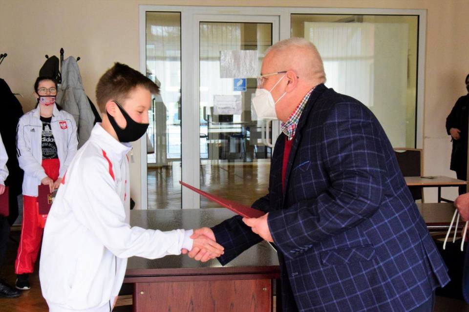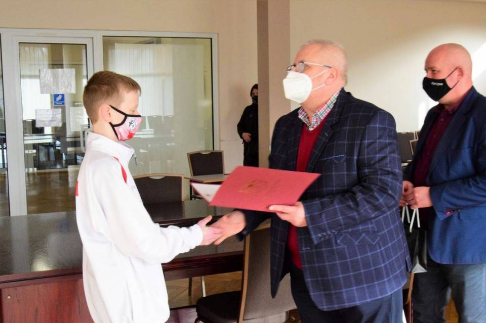 Z racji obowiązującego reżimu sanitarnego wręczenie nagród podzielono na dwa dni. W poniedziałek nagrodzeni zostali zawodnicy MKLA Łęczyca: Sebastian Antosiak, Szymon Kłosiński i Ewa Różańska. Burmistrz docenił także starania trenerów, panów Mirosława Andrysiaka i Roberta Kubiaka.