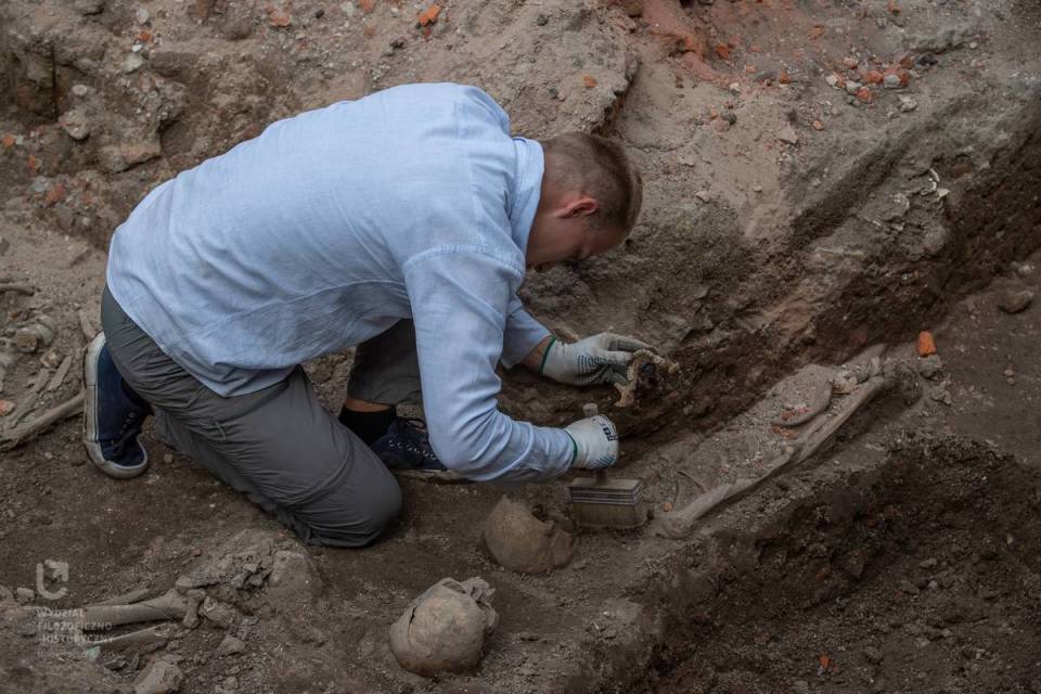 - W czasie prac wykopaliskowych stopniowo rozpoznajemy kolejne fragmenty kompleksu. Studenci i absolwenci archeologii prowadzą pracę w obrębie nawy kościoła, kaplicy oraz znajdującej się pod nią krypty, a także przylegających do nich cmentarzy. Pod posadzkami dawnych zabudowań klasztornych odkryty został piec – być może hypocaustum (prace w jego wnętrzu i sąsiedztwie nadal trwają). Jednak nadrzędnym celem badań archeologicznych jest próba odnalezienia grobu księcia Kazimierza II Łęczyckiego, który zginął tragicznie w 1294 roku w trakcie bitwy z wojskami litewskimi - mówi dr inż. Artur Ginter.