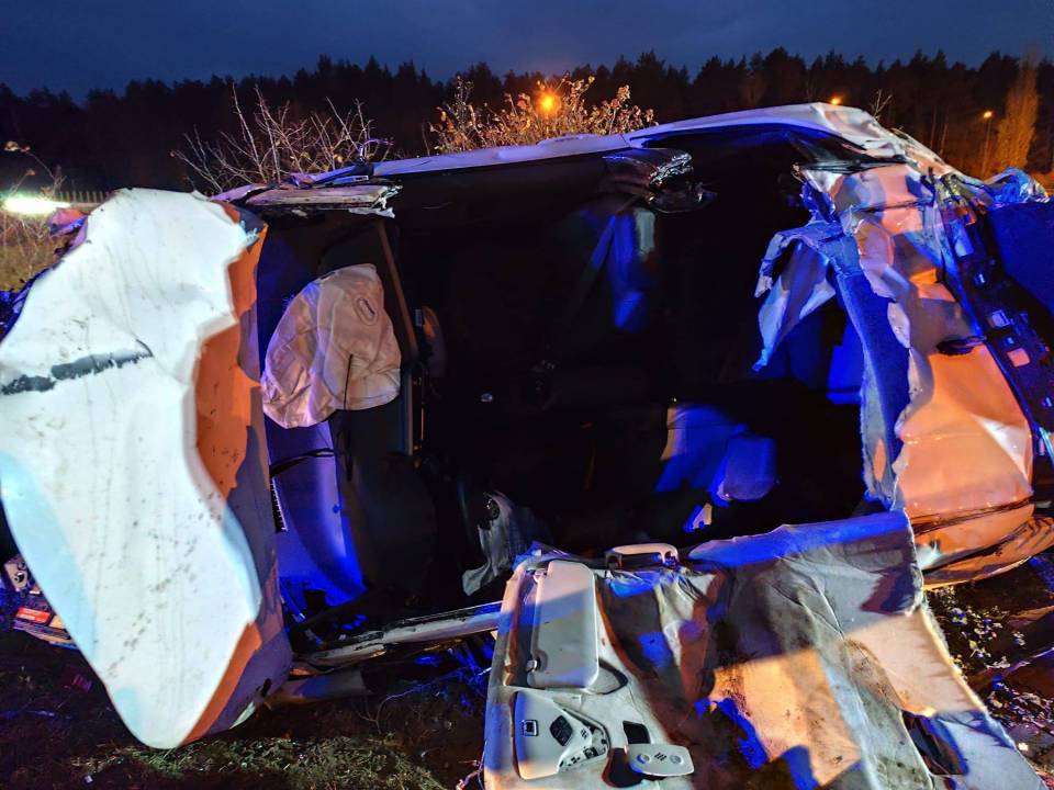 Gdy zastępy straży pożarnej dotarły na miejsce zastały tam uwięzionego w aucie kierowcę (mężczyzna, 69 lat), natomiast pasażerka (kobieta, 57 lat) znajdowała się już poza samochodem. Strażacy wykonali dostęp do kierującego, a następnie wszystkim została udzielona kwalifikowana pierwsza pomoc.