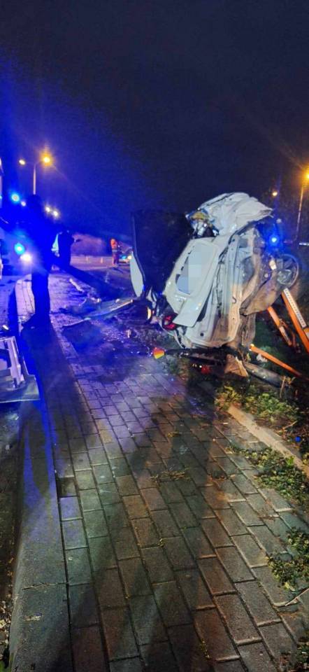 Kierujący samochodem marki Honda z nieustalonych na tę chwilę przyczyn doprowadził do uderzenia pojazdu w stojącą lampę oświetleniową, a ta w następnie uderzyła w stojący obok samochód ciężarowy.