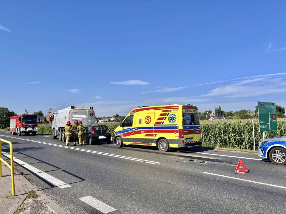 Poszkodowany - kierowca Nissana, został przewieziony karetką pogotowia do łęczyckiego szpitala.