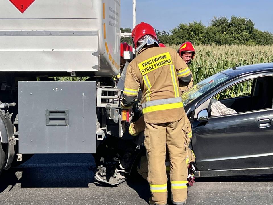 O godzinie 16:23, do stanowiska kierowania Komendy Powiatowej Państwowej Straży Pożarnej w Łęczycy, wpłynęło zgłoszenie dotyczące zderzenia samochodu osobowego z ciężarowym, przewozącym paliwo płynne.