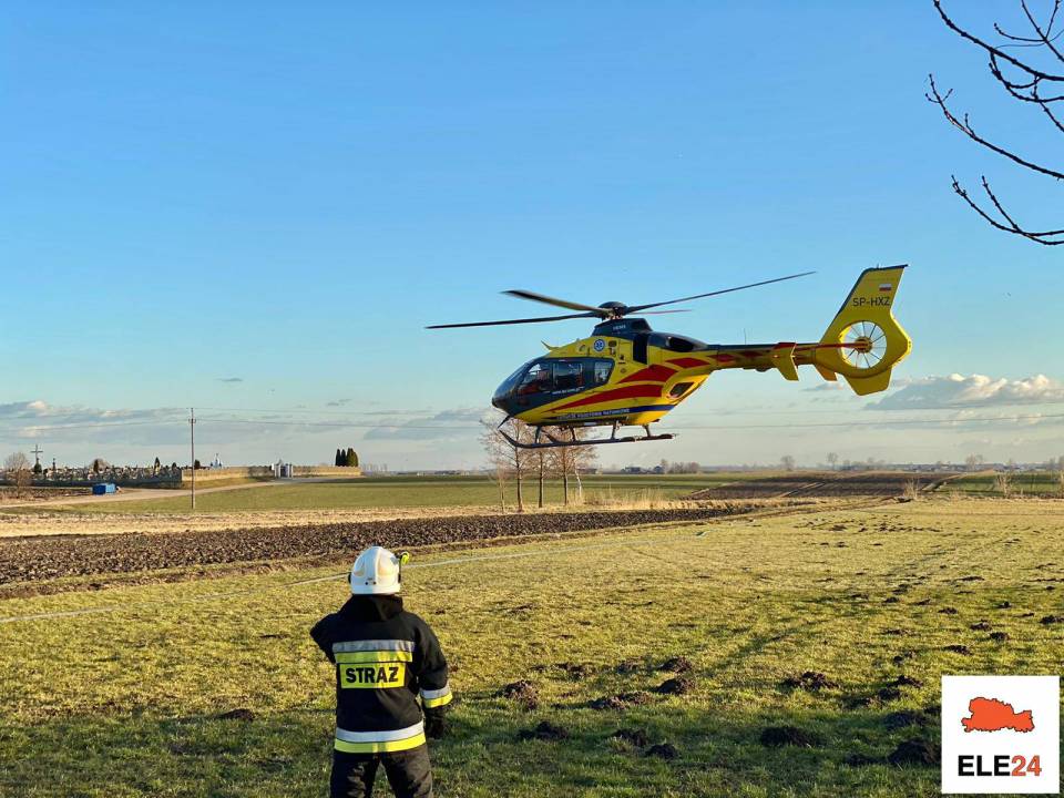 Jak udało nam się dowiedzieć na miejscu zdarzenia, poszkodowany to ok. 45-letni mężczyzna. Maszyna rolnicza wciągnęła jego rękę, w wyniku czego prawdopodobnie stracił trzy palce. Śmigłowiec Lotniczego Pogotowia Ratunkowe przetransportował go do szpitala.