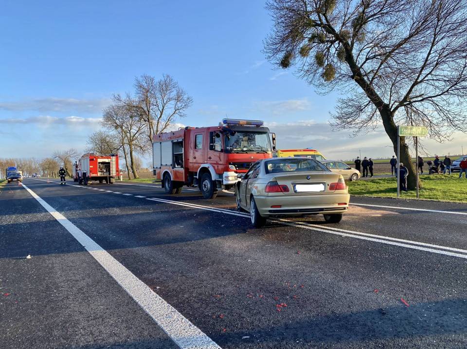 Ze wstępnych ustaleń wynika, iż oba pojazdy jechały od strony Łęczycy w kierunku Krośniewic. Kierujący granatowym Volkswagenem Golfem, skręcał w lewo, przy czym został uderzony przez próbujące go wyprzedzić z prawej strony BMW.