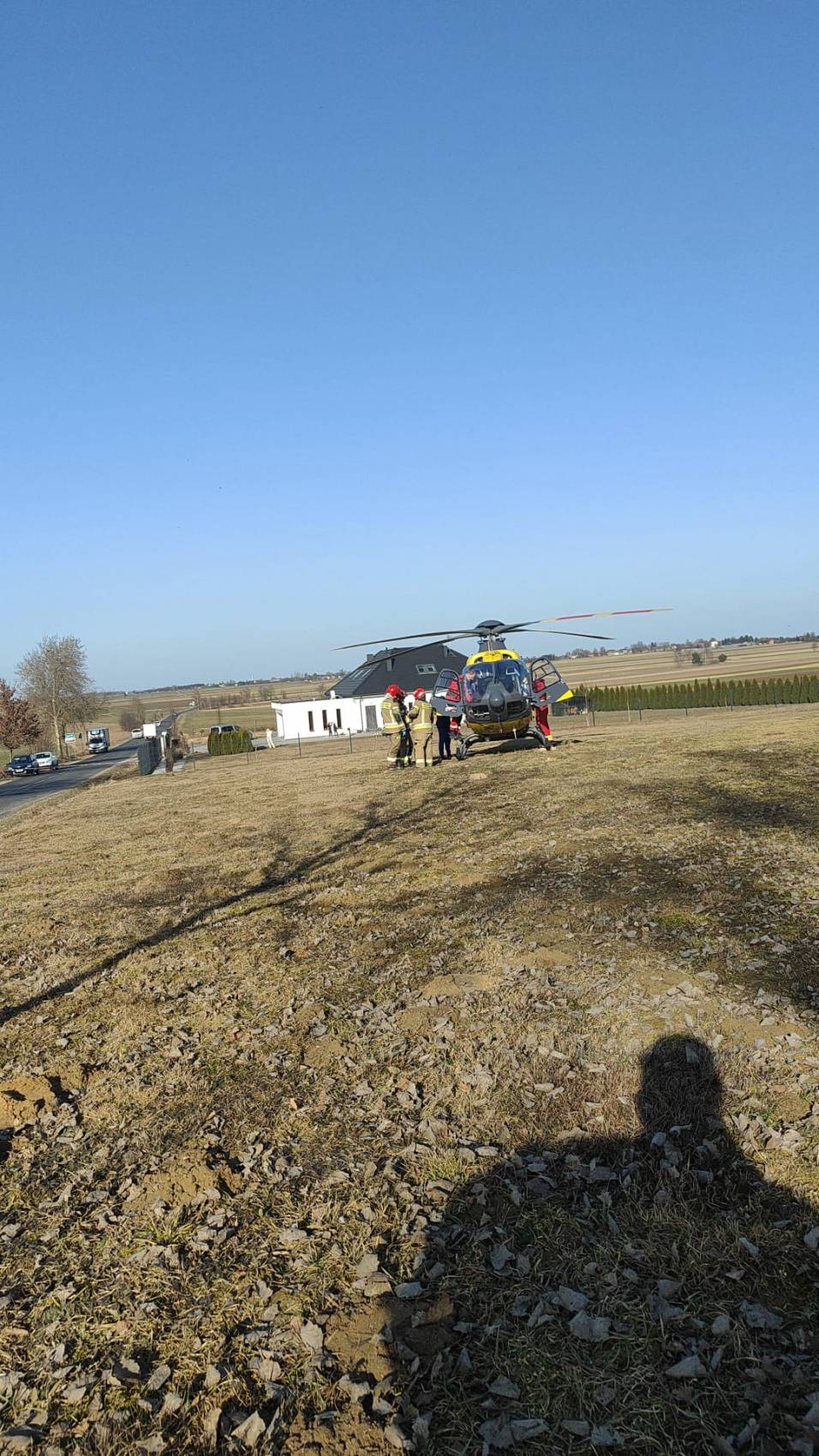 Wypadek dwóch osobówek w gminie Moszczenica. Na miejscu strażacy, ratownicy i śmigłowiec LPR [Foto]