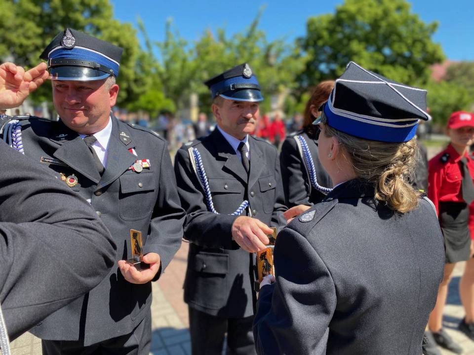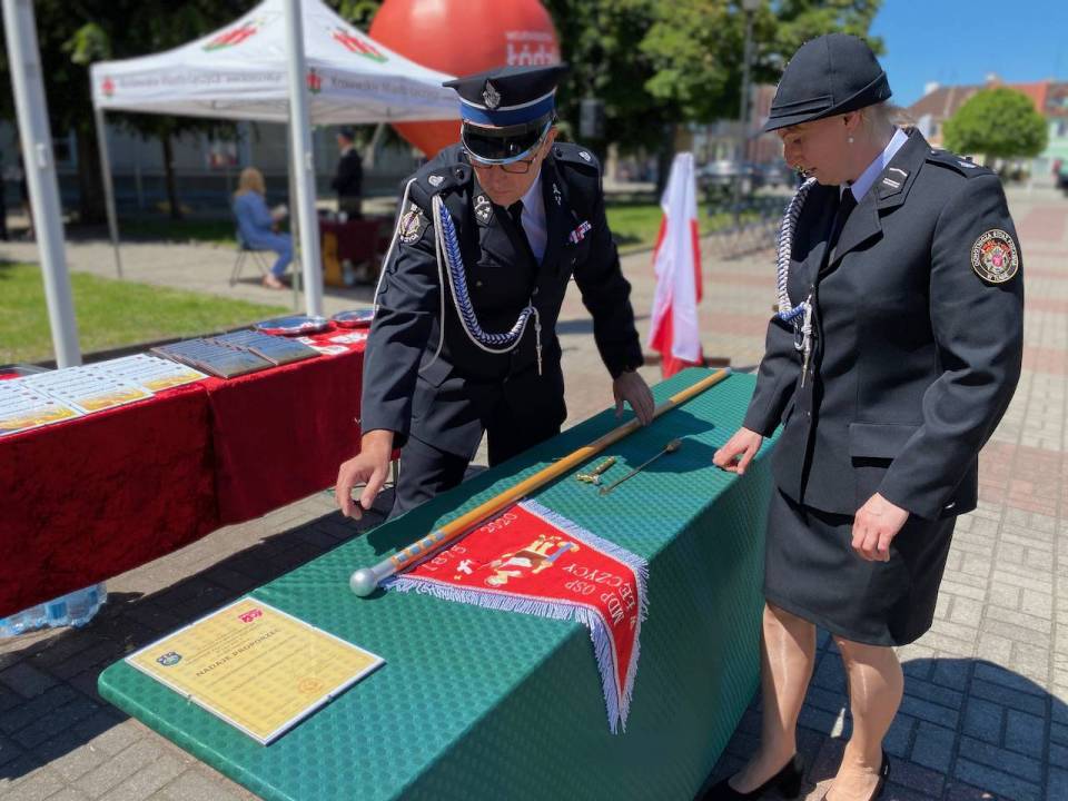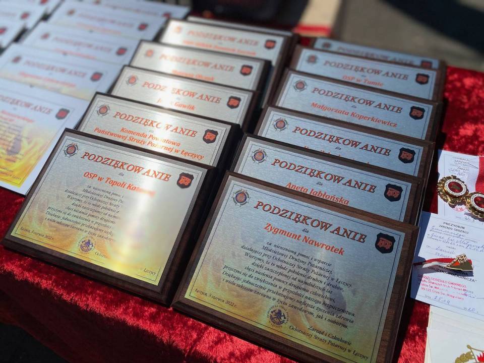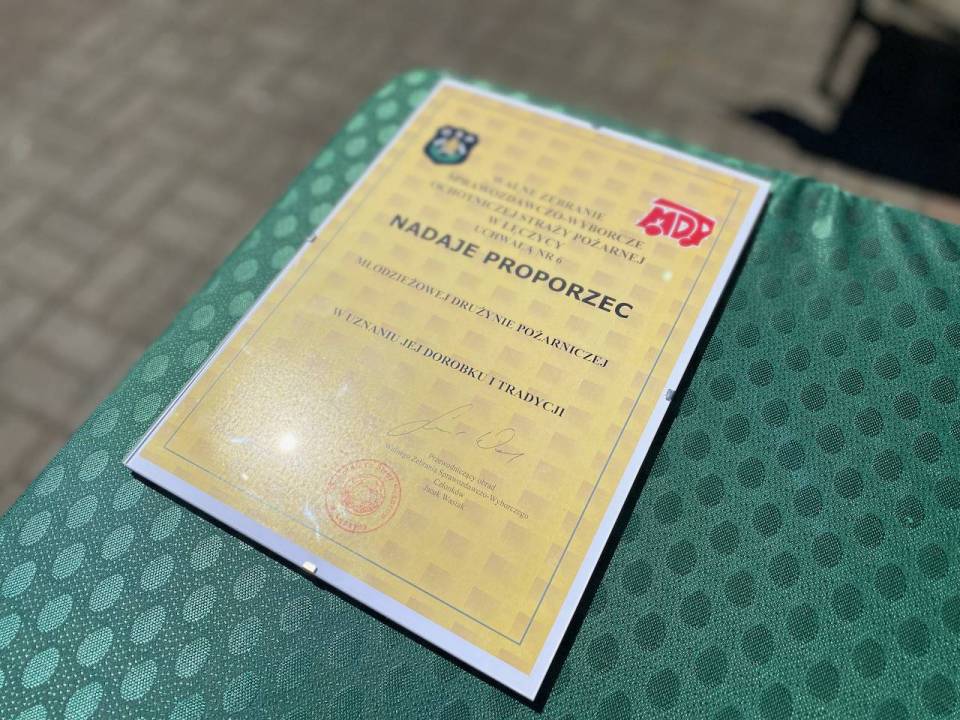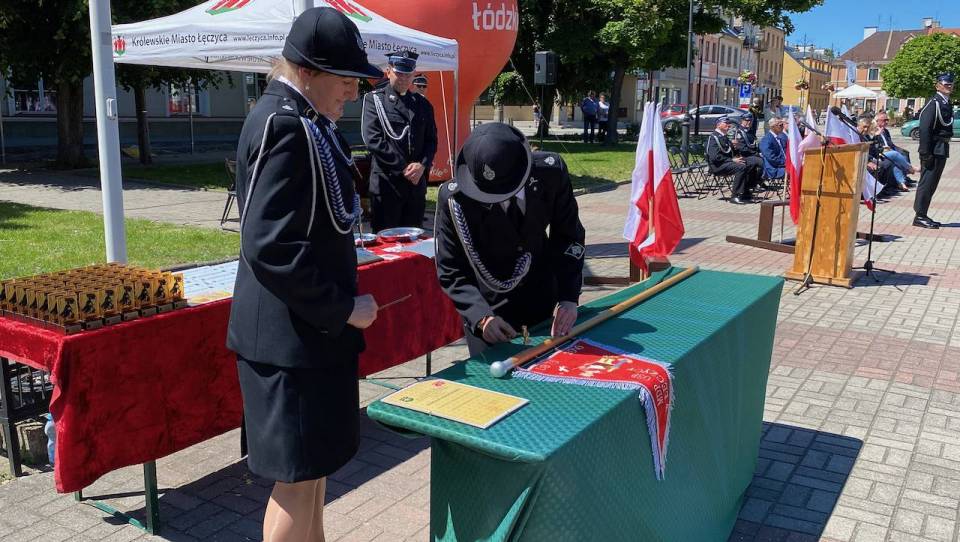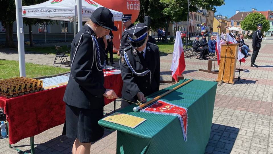 Łęczyckie Święto Strażaka OSP było okazją do wręczenia odznaczeń, wyróżnień oraz podziękowań, jednak głównym punktem było, w uznaniu dorobku i tradycji, nadanie proporca Młodzieżowej Drużyny Pożarniczej. Wcześniej druhna Aneta Jabłońska przybliżyła uczestnikom uroczystości początki MDP przy OSP w Łęczycy.