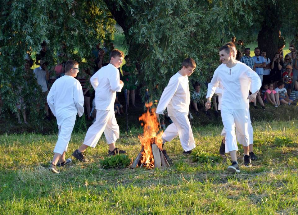 Uczestnicy festynu przenieśli się nad rzeczkę Rgilówkę, gdzie odegrana została inscenizacja Nocy Kupały, która poświęcona jest przede wszystkim żywiołom wody i ognia, mającym oczyszczającą moc. To również święto miłości, płodności, słońca i księżyca.