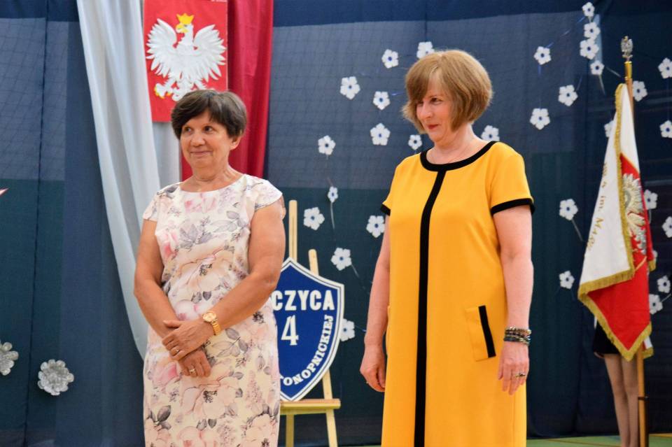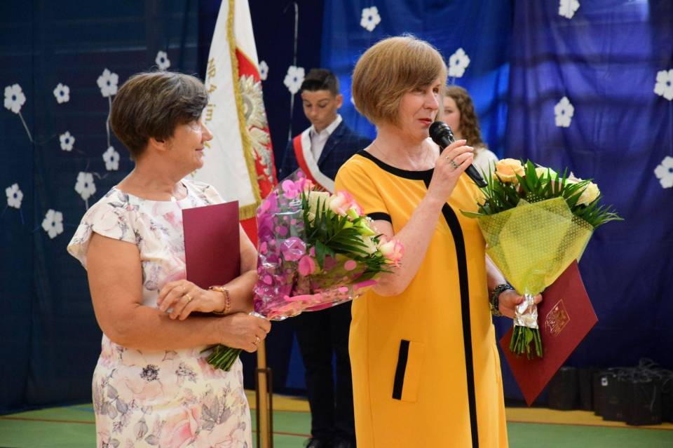 Każdej uroczystości towarzyszyły emocje, a dodatkowo Szkoła Podstawowa nr 4 żegnała dwie byłe panie dyrektor – Bogumiłę Wójtowicz i Krystynę Grochalę – które wraz z zakończeniem tego roku szkolnego odchodziły na zasłużoną emeryturę.
