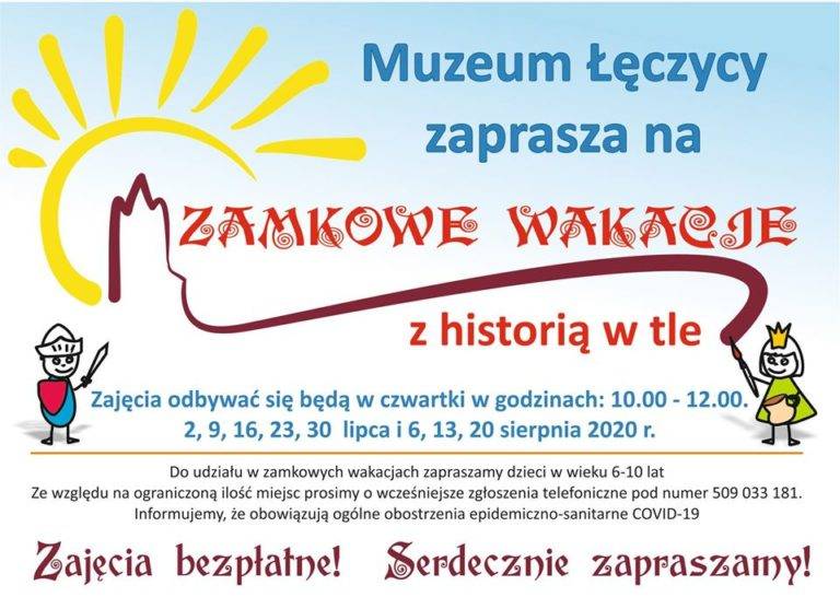 W czasie tegorocznych wakacji Muzeum w Łęczycy zorganizuje cykl spotkań edukacyjno – sportowych. Odbywać się one będą pod hasłem „Zamkowe wakacje z historią w tle". W programie przewidziano m. in. warsztaty plastyczne, zajęcia rozwijające kreatywność, wrodzone zdolności i umiejętności nie tylko manualne, a także zabawy i gry sportowe.