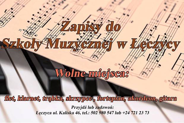 Państwowa Szkoła Muzyczna I i II st. im. K. Kurpińskiego w Kutnie Filia w Łęczycy przedłuża termin rekrutacji.