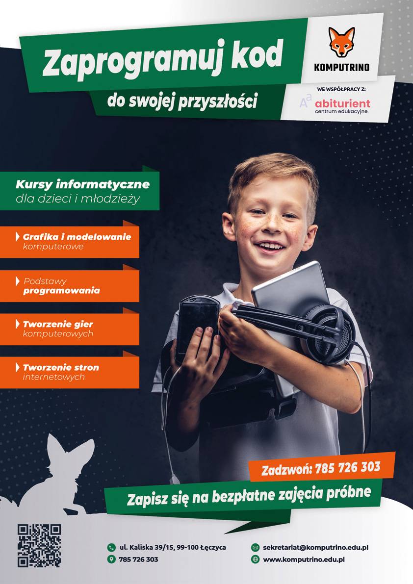 Komputrino - "Zaprogramuj kod do swojej przyszłości" to kursy dla dzieci i młodzieży w formie stacjonarnej, a wkrótce także online. I to nie byle jakie kursy, lecz oferujące kształcenie w jednej z najbardziej przyszłościowych i rozwijających się branży – IT (technologii informatycznych).