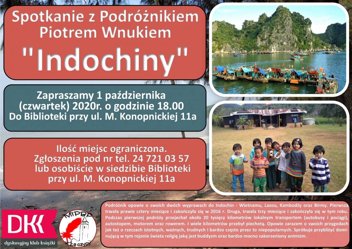 Podróżnik opowie o swoich dwóch wyprawach do Indochin - Wietnamu, Laosu, Kambodży oraz Birmy. Pierwsza trwała prawie cztery miesiące i zakończyła się w 2016 r. Druga, trwała trzy miesiące i zakończyła się w tym roku. Podczas pierwszej podróży przejechał około 20 tysięcy kilometrów lokalnym transportem (autobusy i pociągi), autostopem, motorem oraz rowerem. I wiele kilometrów przebył piechotą. Opowie zarazem o swoich przygodach jak też o rzeczach istotnych, ważnych, trudnych i bardzo często przez to niepopularnych. Spróbuje przybliżyć dominującą w tym rejonie świata religię jaką jest buddyzm oraz bardzo mocno zakorzeniony animizm.