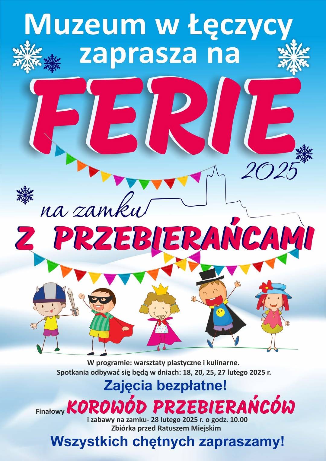 W programie Ferii znajdą się kreatywne warsztaty i zajęcia, których tematem wiodącym będzie karnawał oraz łęczyckie tradycje zapustowe. Spotkania odbywać się będą w dniach: 18, 20, 25, 27 lutego br. w godz. 10.00 –12.0.00.