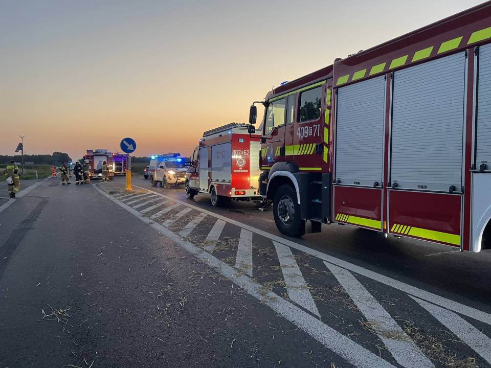 Na drodze krajowej nr 74, na styku powiatów bełchatowskiego i wieluńskiego, doszło do poważnego wypadku z udziałem samochodu osobowego i cysterny przewożącej gaz. W wyniku zderzenia pojazd ciężarowy zapalił się, a droga została całkowicie zablokowana w obu kierunkach. Na miejscu trwają intensywne działania służb ratunkowych. Utrudnienia mogą potrwać nawet do rana.
