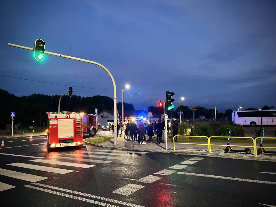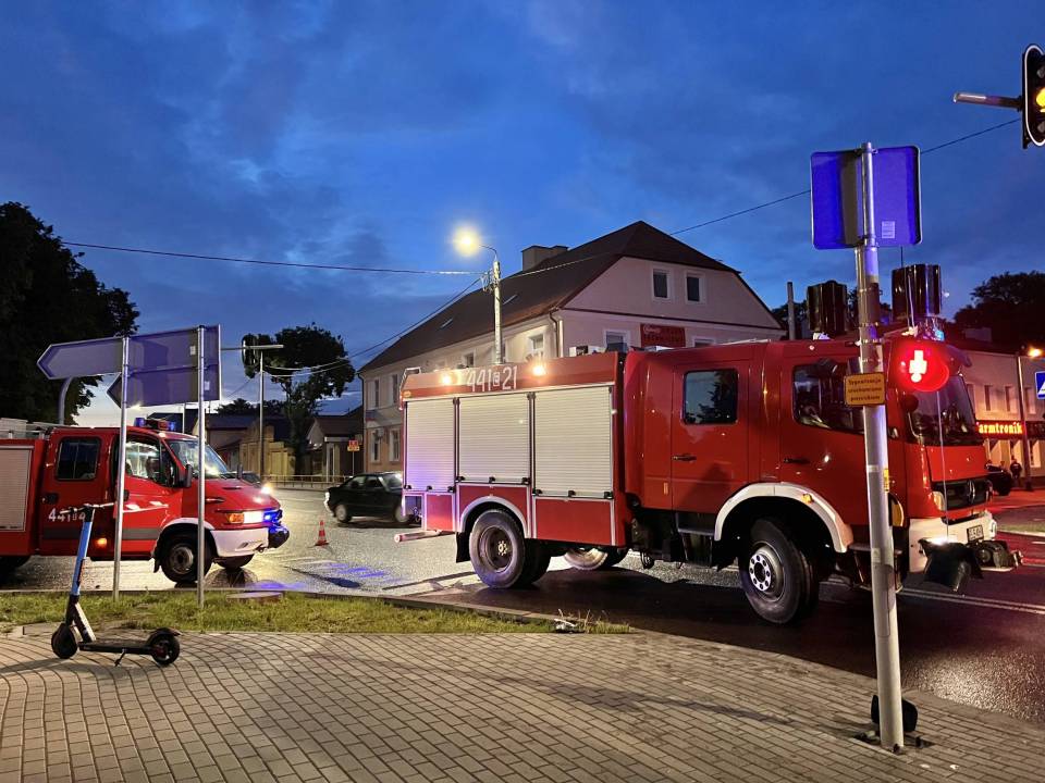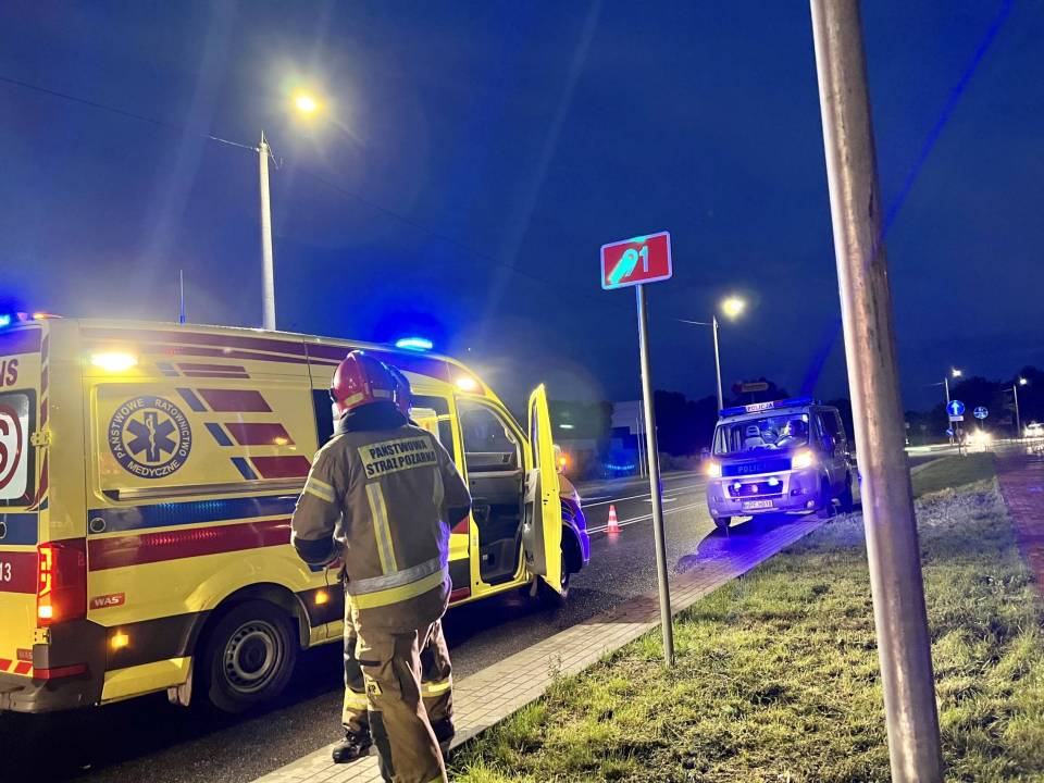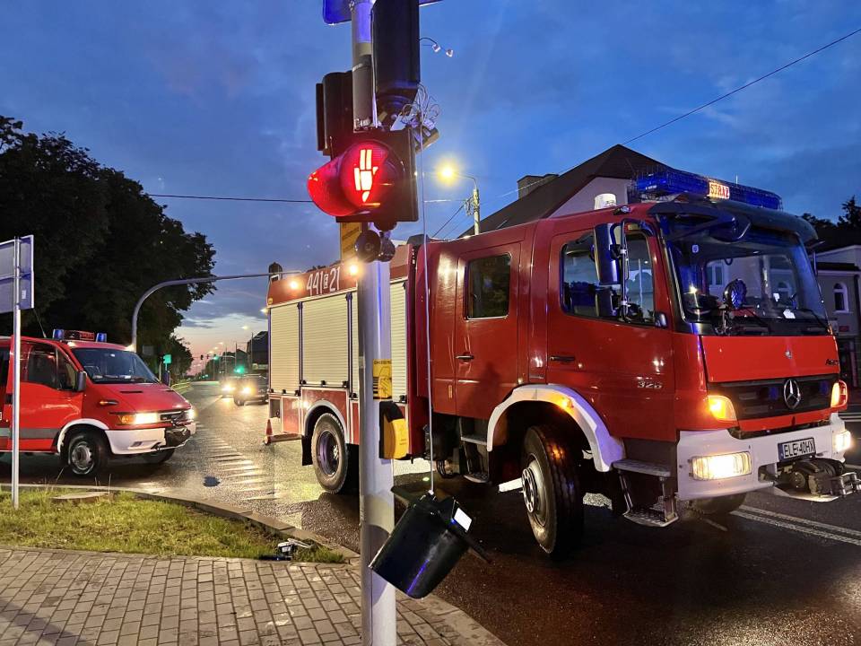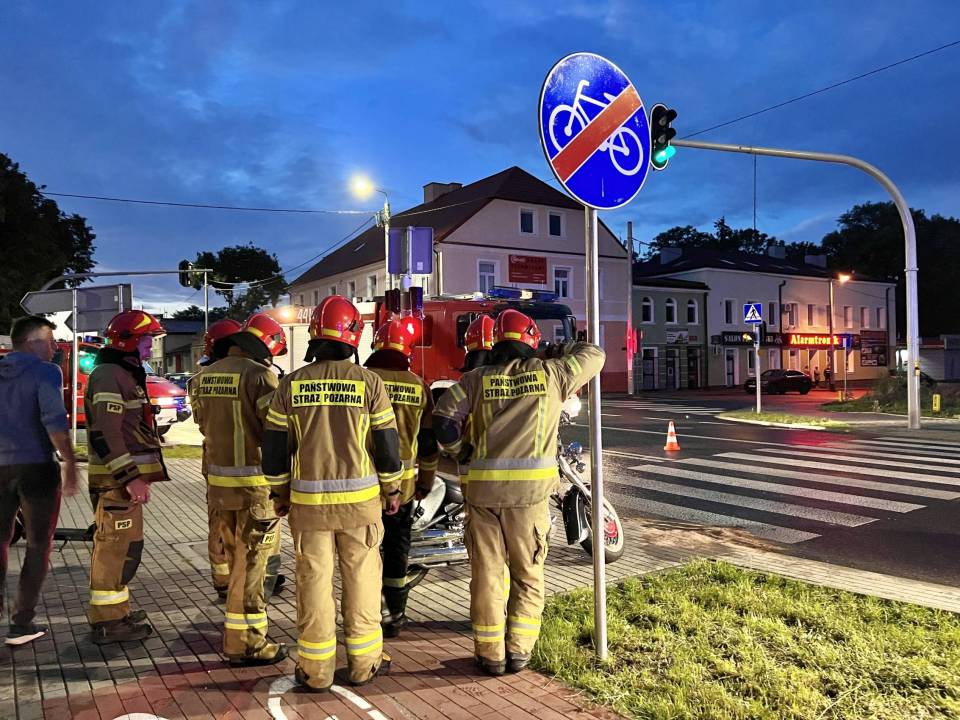 Kilka minut po godzinie 21, do stanowiska kierowania Komendy Powiatowej Państwowej Straży Pożarnej w Łęczycy, wpłynęło zgłoszenie dotyczące zdarzenia z udziałem motocyklisty oraz pojazdu osobowego, do którego doszło przy skrzyżowaniu ulic Sienkiewicza (DK 91) i Belwederskiej.