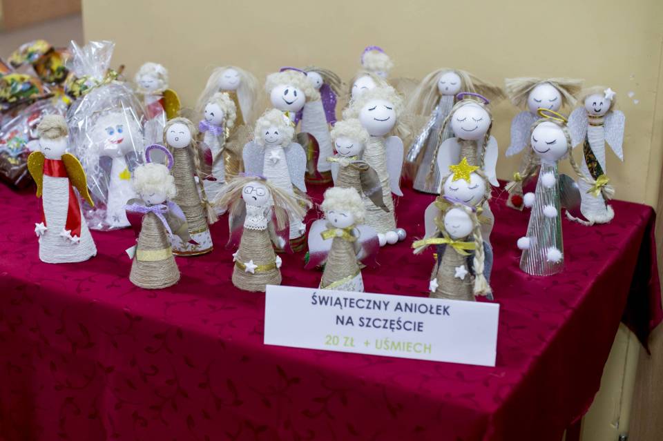 Uczestnicy kiermaszu mogli zakupić pyszne słodkości, a także dekoracje świąteczne: stroiki, aniołki czy bombki. Przygotowali je rodzice oraz uczniowie pod opieką nauczycieli. Najmłodsi uczniowie - bawiąc się w kucharzy - wycinali i dekorowali pierniczki, a starsi wyczarowywali aniołki z piłeczek pingpongowych i tworzyli własne stroiki. Ilość kupujących zaskoczyła wszystkich. Zebrane fundusze umożliwią naszym uczniom rozwój ich artystycznych pasji i zainteresowań.