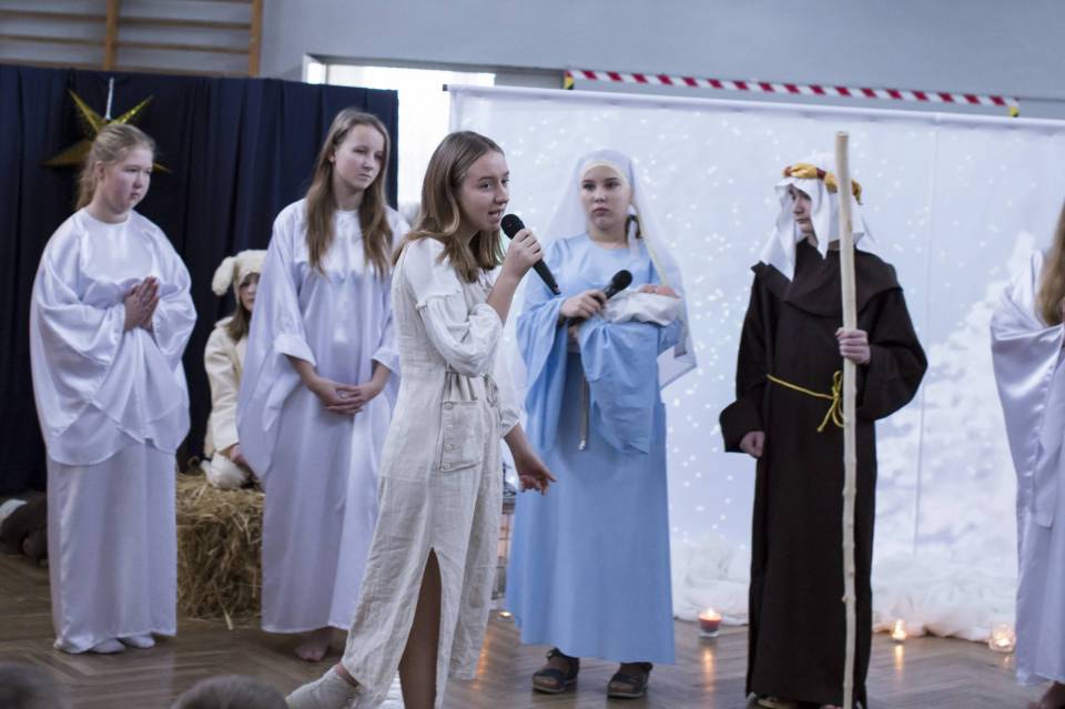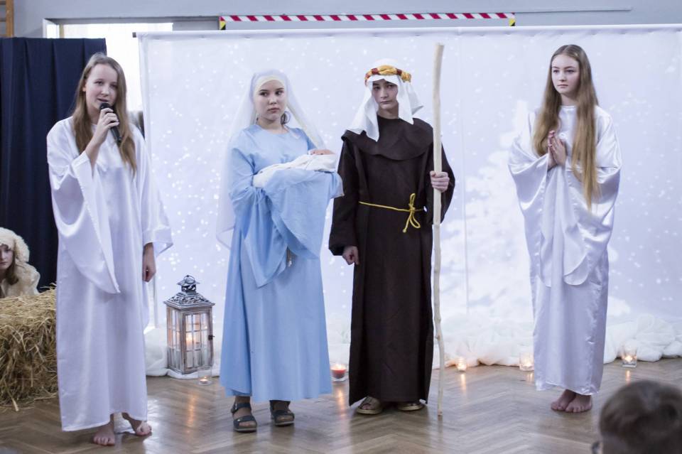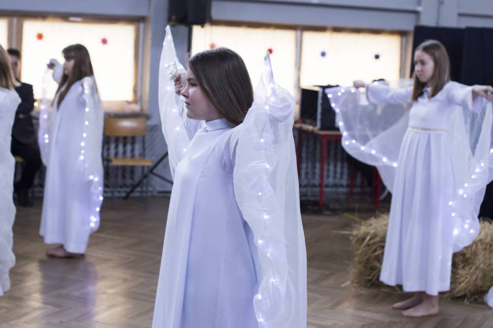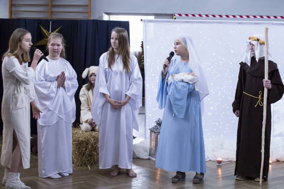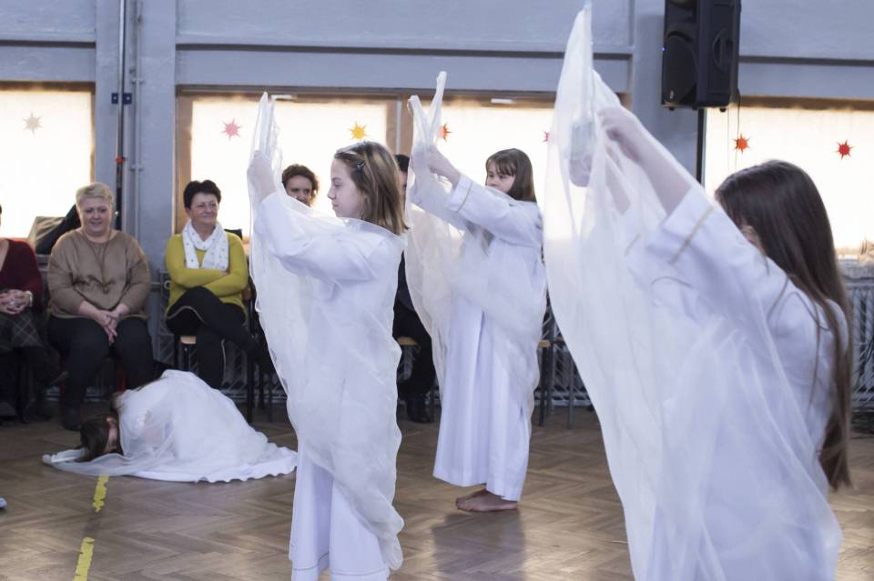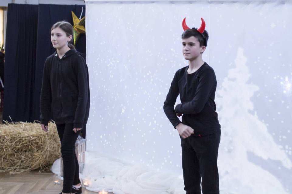 A tych nie brakuje, o czym świadczy fakt, że do koła teatralnego wciąż przybywają nowi uczniowie - chcą śpiewać, tańczyć i grać różnego typu role - tak dramatyczne jak i komediowe. Wszystko to widzowie mogli zobaczyć w tegorocznych jasełkach: były tańce aniołów, humorystyczna scena kłótni pastuszków z królami, przebiegłość diabła i okrucieństwo Heroda, a także sporo zadumy, refleksji oraz bożonarodzeniowego nastroju, w który wprowadził widzów wykonany na koniec koncert kolęd. Kolejny kiermasz planowany jest na okres wielkanocny.