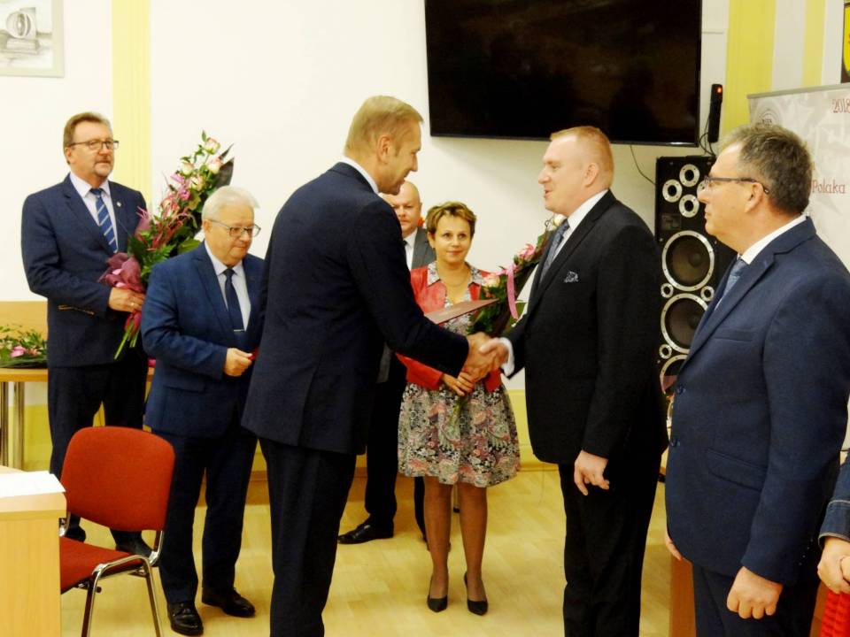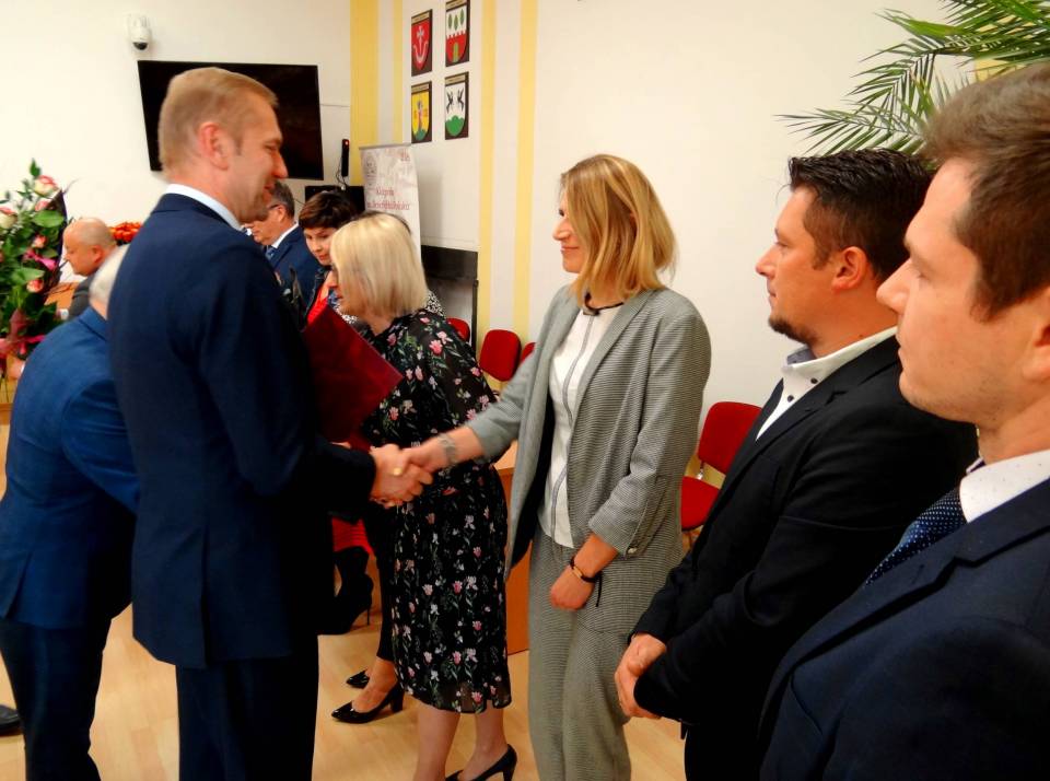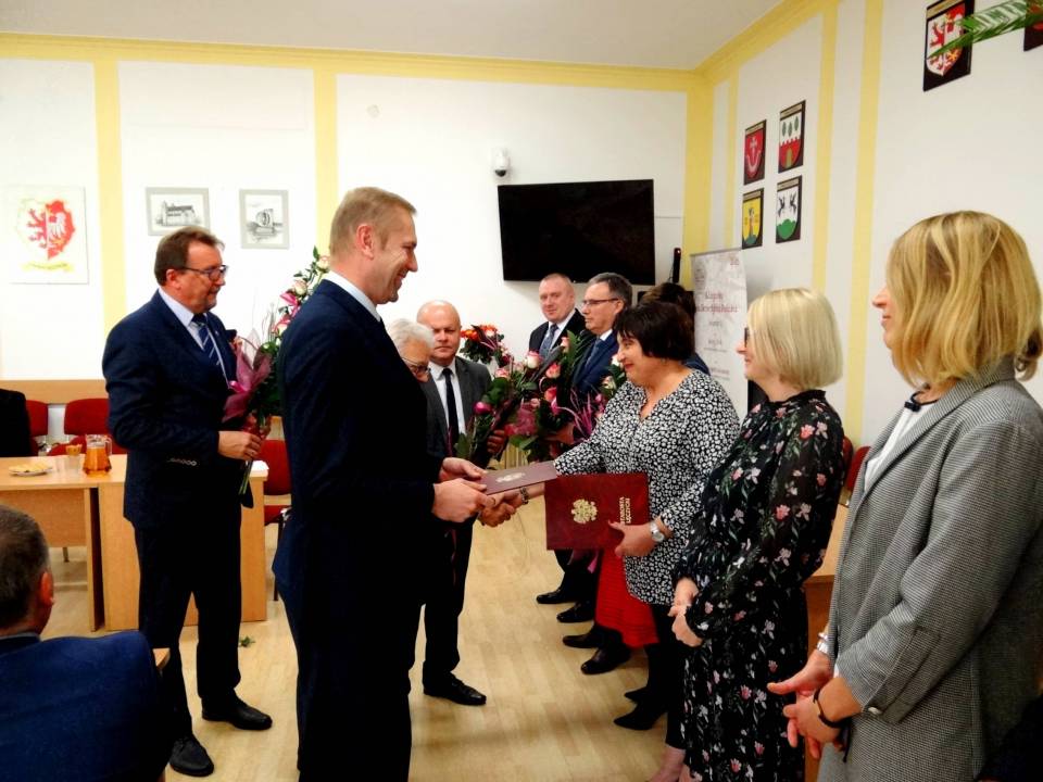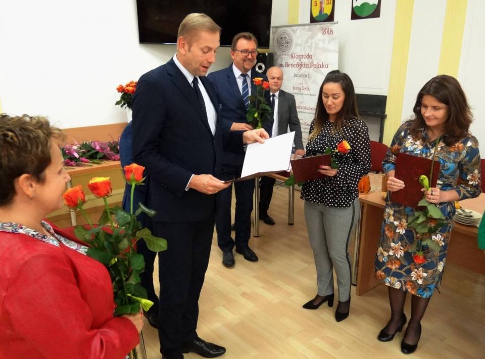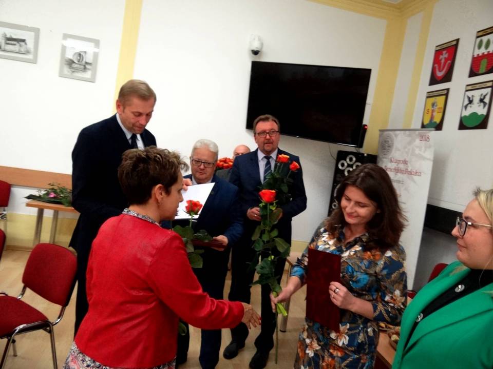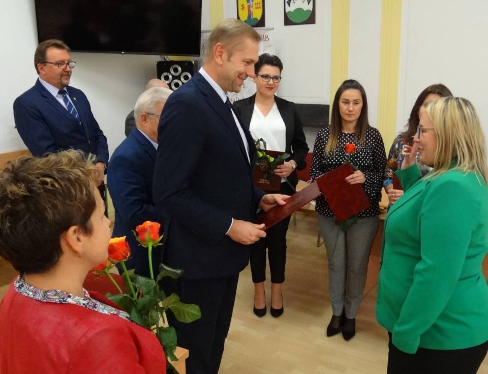 Pan Starosta wręczył dwóm nauczycielom listy gratulacyjne: