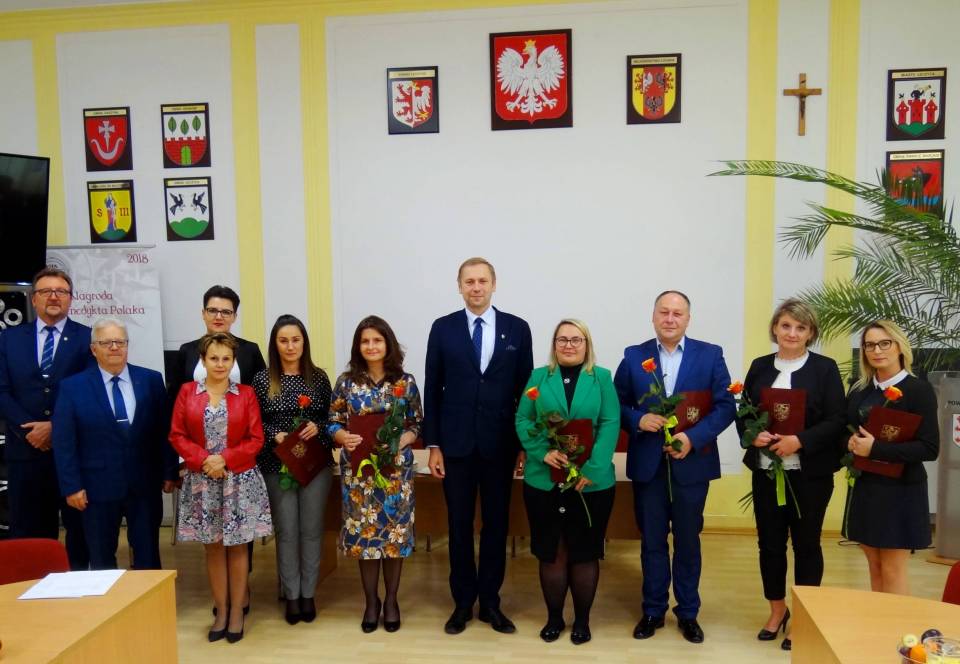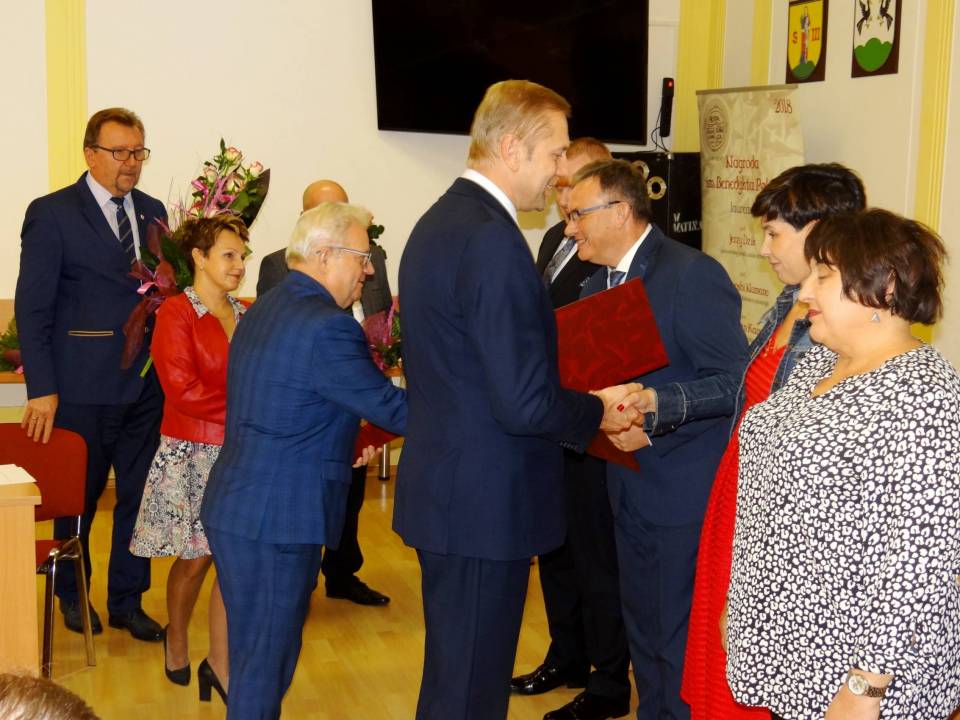 Starosta Łęczycki Pan Janusz Mielczarek na wniosek rad pedagogicznych, dyrektorów szkół oraz kierownika Wydziału Oświaty przyznał nagrody następującym nauczycielom: