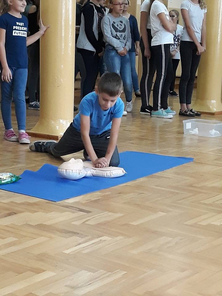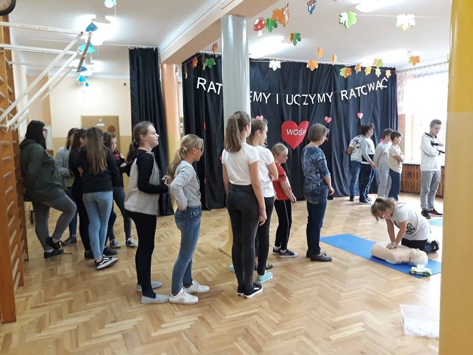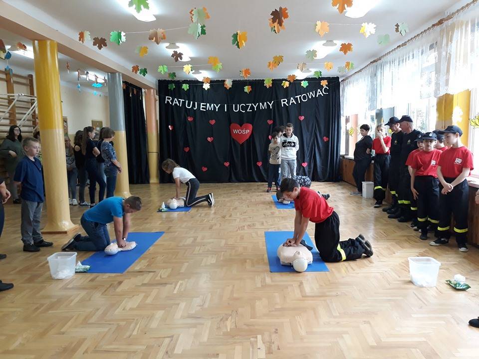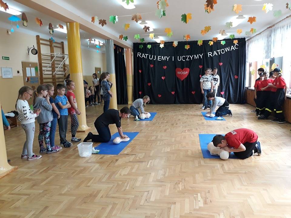 W środę, 16 października obchodzimy Europejski Dzień Przywracania Czynności Serca. Jego celem jest popularyzacja wiedzy na temat zasad udzielania pierwszej pomocy w stosunku do osoby, u której wystąpiło nagłe zatrzymanie krążenia. Uczniowie Szkoły Podstawowej w Kadzidłowej po raz kolejny przystąpili do akcji organizowanej pod patronatem Wielkiej Orkiestry Świątecznej Pomocy, która jest próbą bicia rekordu w pierwszej pomocy.
